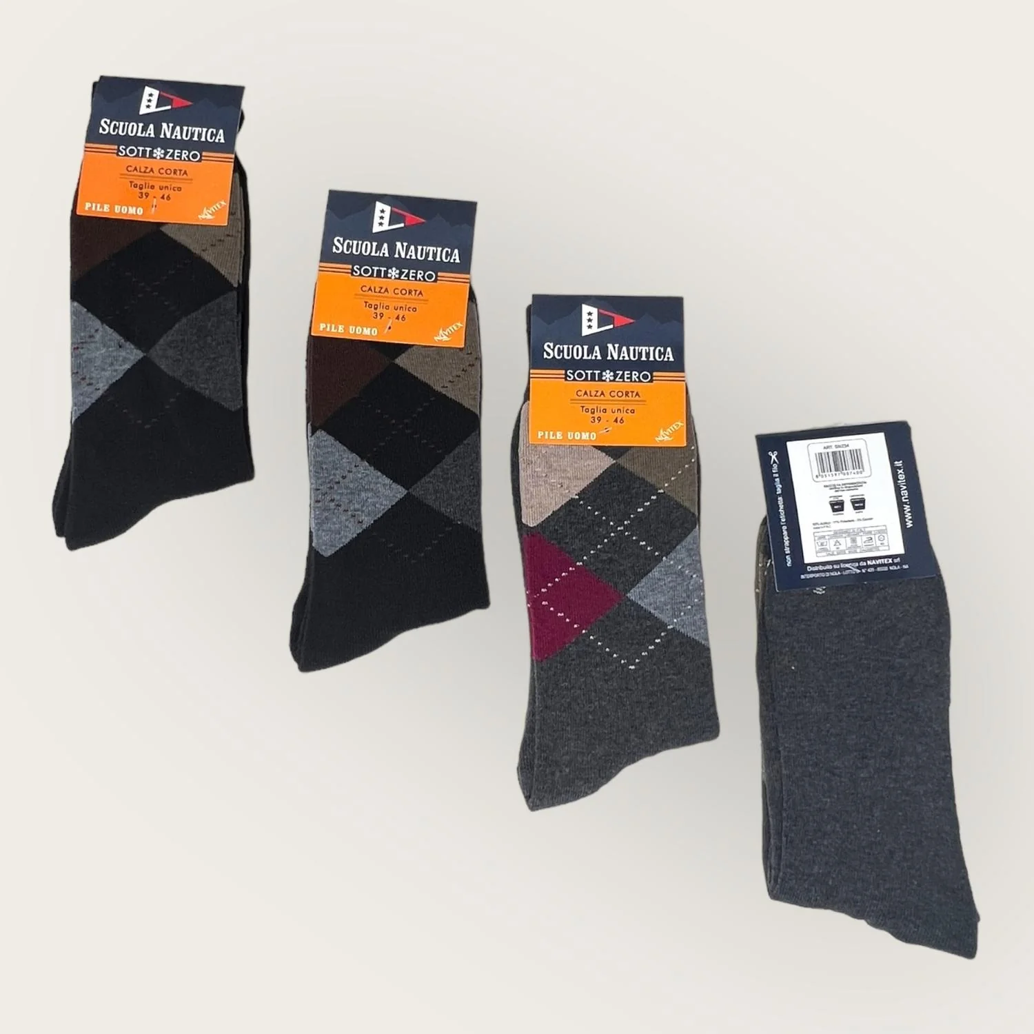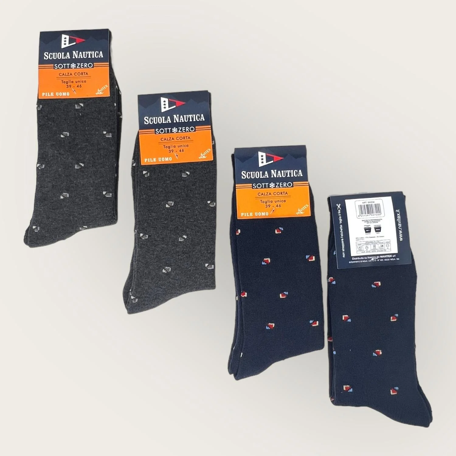 Scuola Nautica – Calza Corta Uomo (pacco Da 4) In Pile Caldo E Morbido Fantasia- Art. Sn234