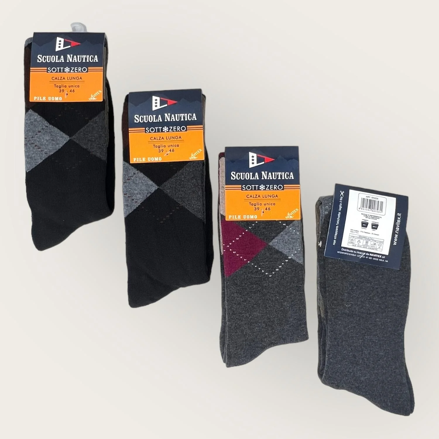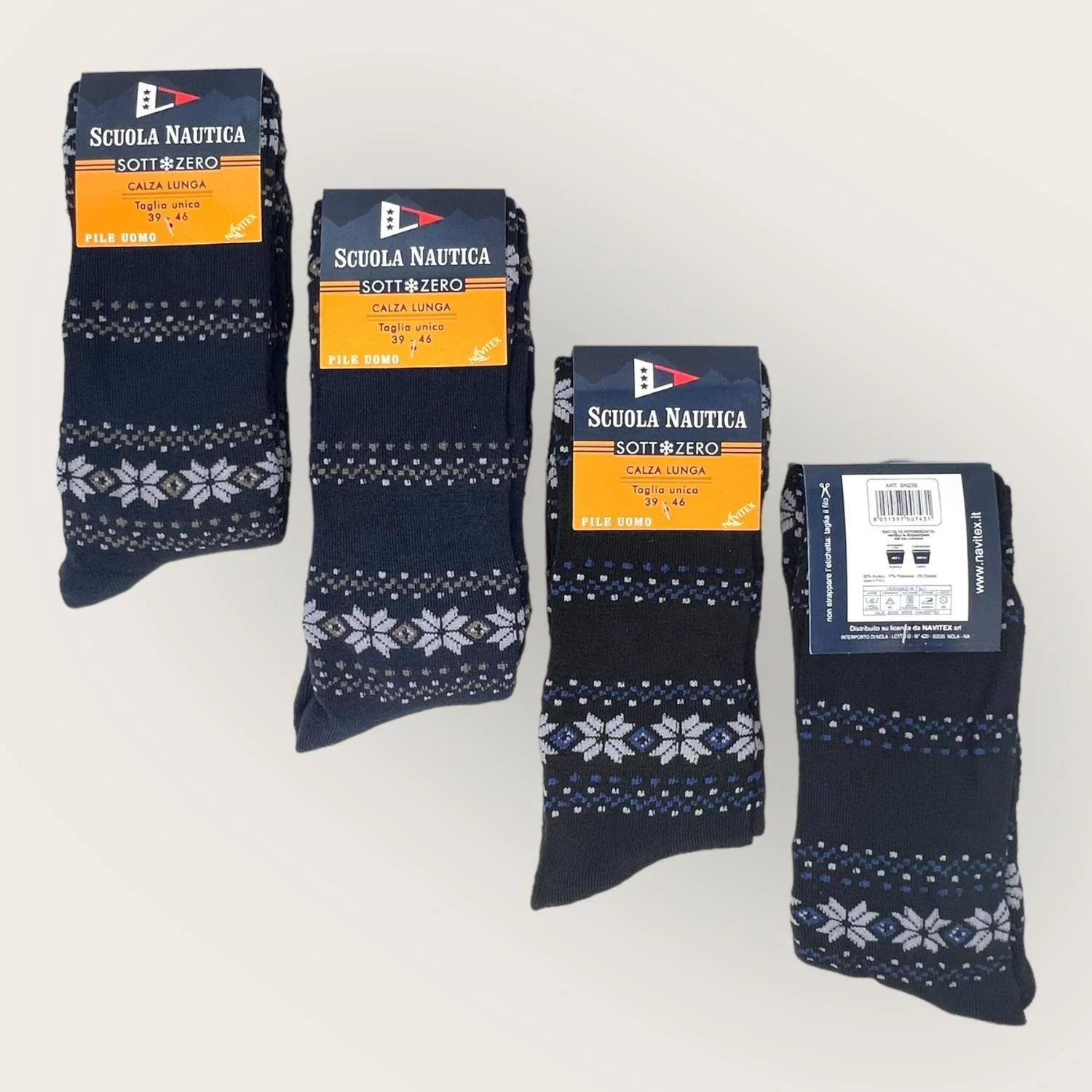 Scuola Nautica – Calza Lunga Uomo (pacco Da 4) In Pile Caldo E Morbido Fantasia- Art. Sn235