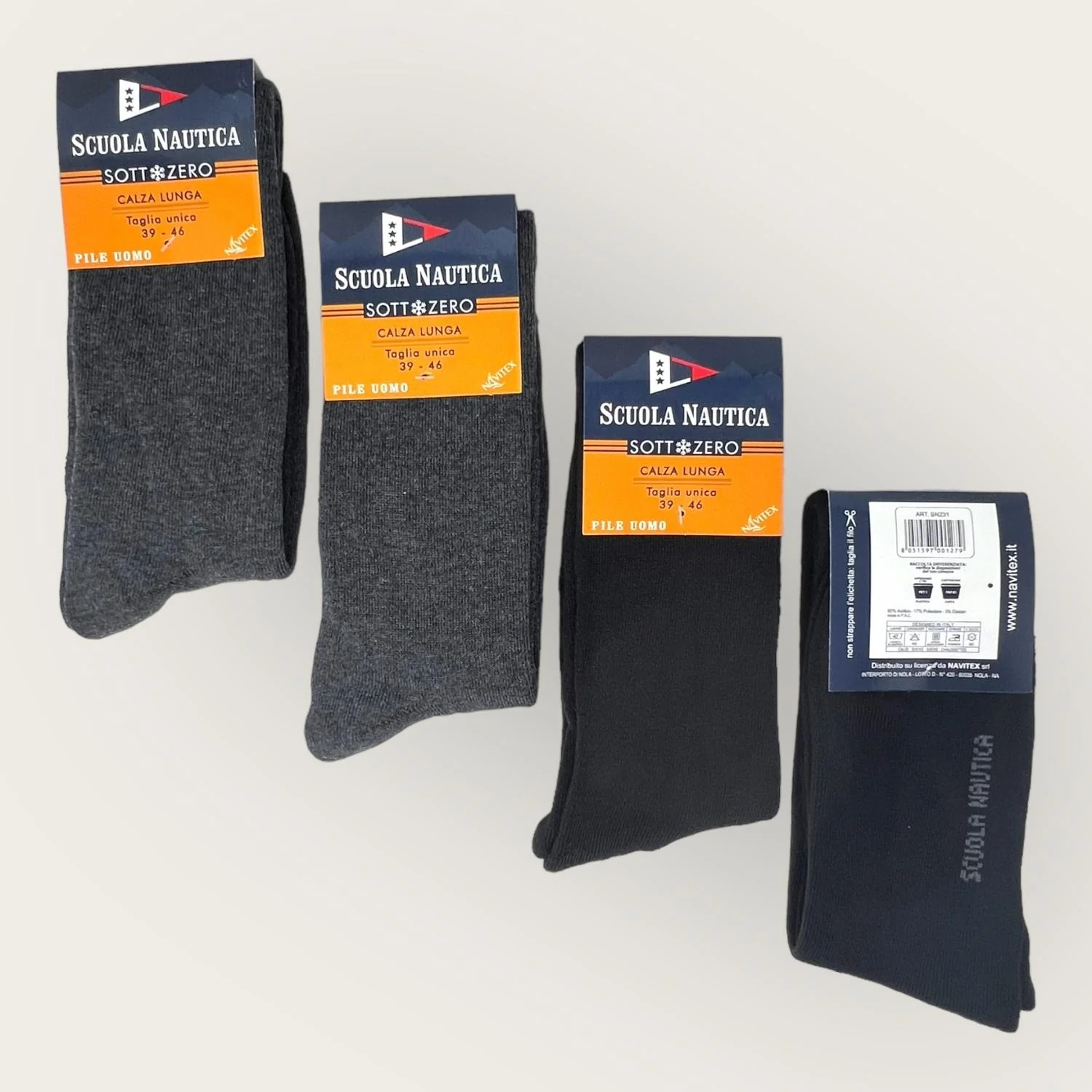 Scuola Nautica – Calza Lunga Uomo (pacco Da 4) In Pile Caldo E Morbido Tinta Unita Art. Sn231