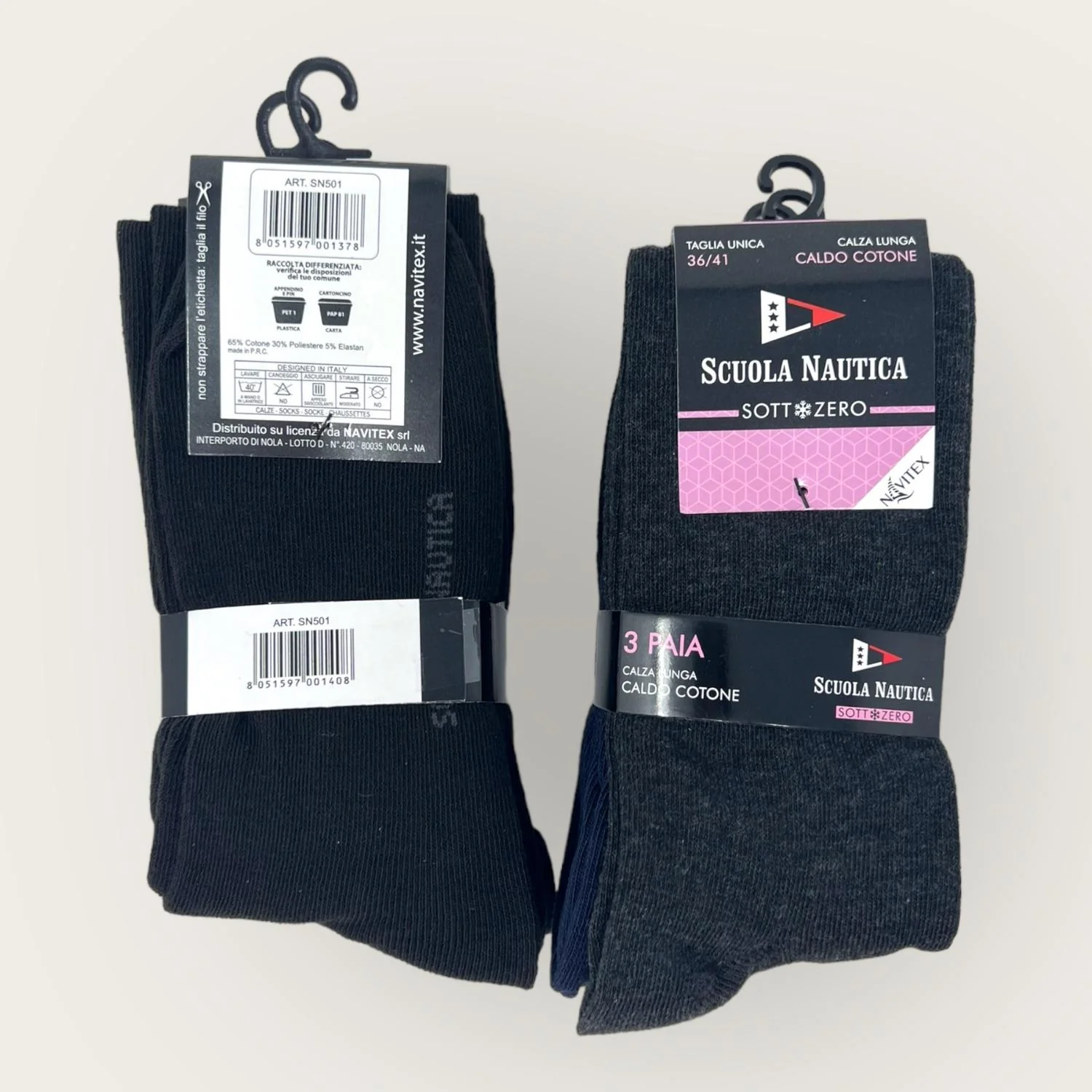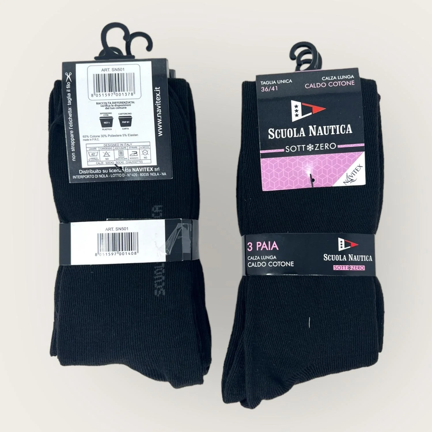 Sn501 Calza – Scuola Nautica Invernale -3 Paia Calza Donna Lunga Tinta Unita In Caldo Cotone-