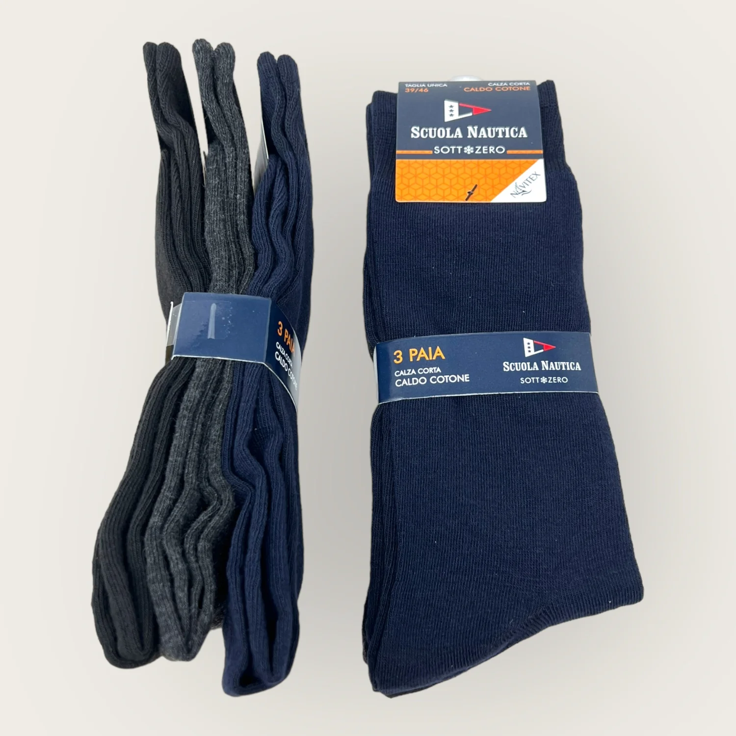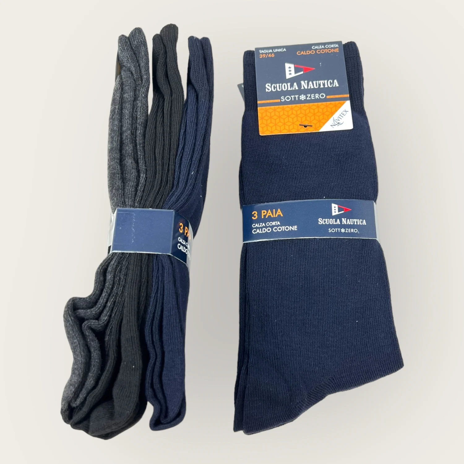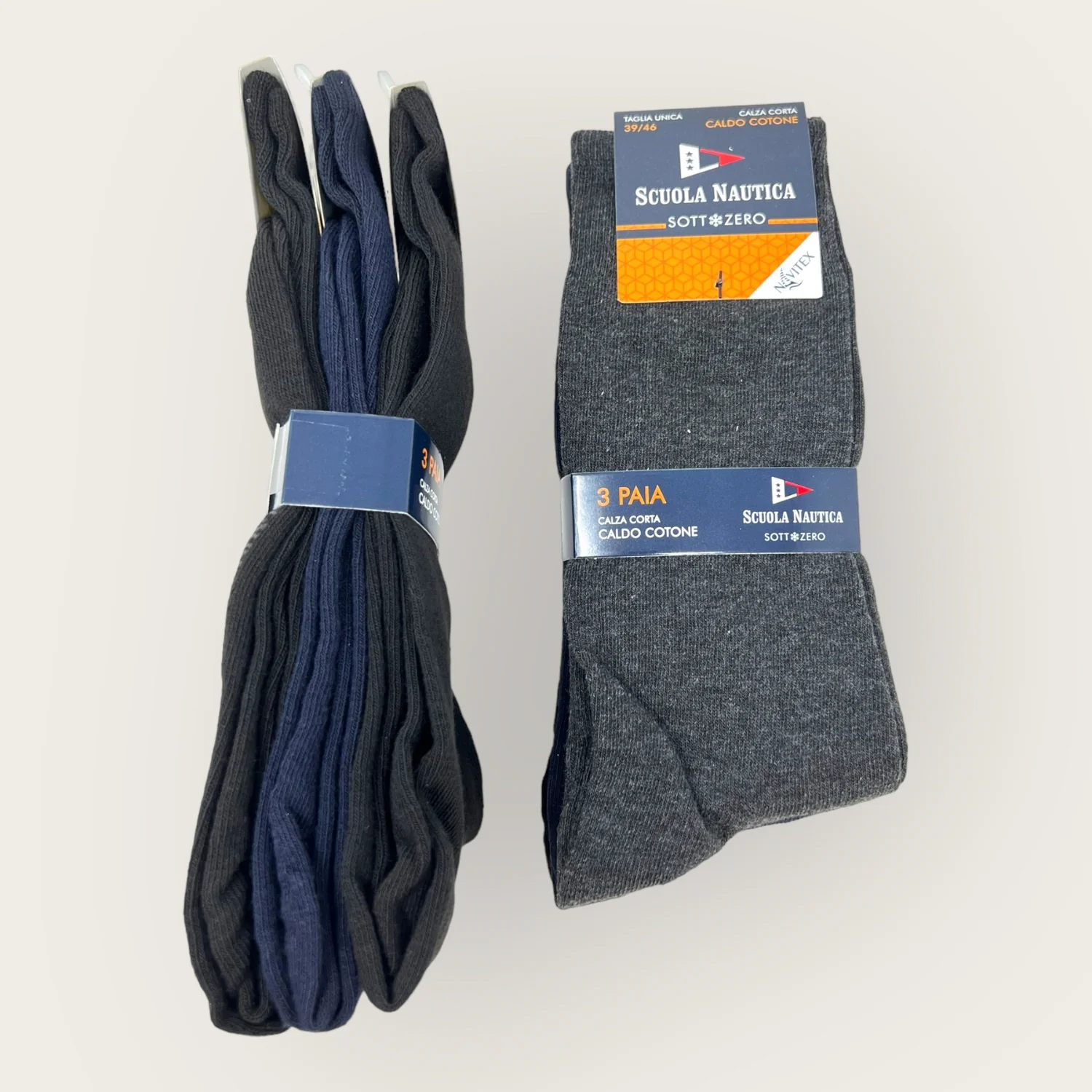 Sn302 Calza – Scuola Nautica Invernale -3 Paia Calza Uomo Corta Tinta Unita Con Disegno In Caldo Cotone-