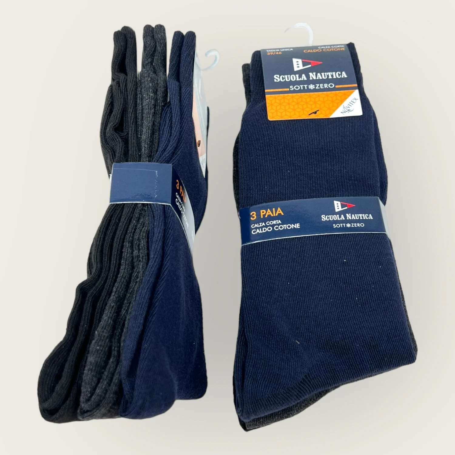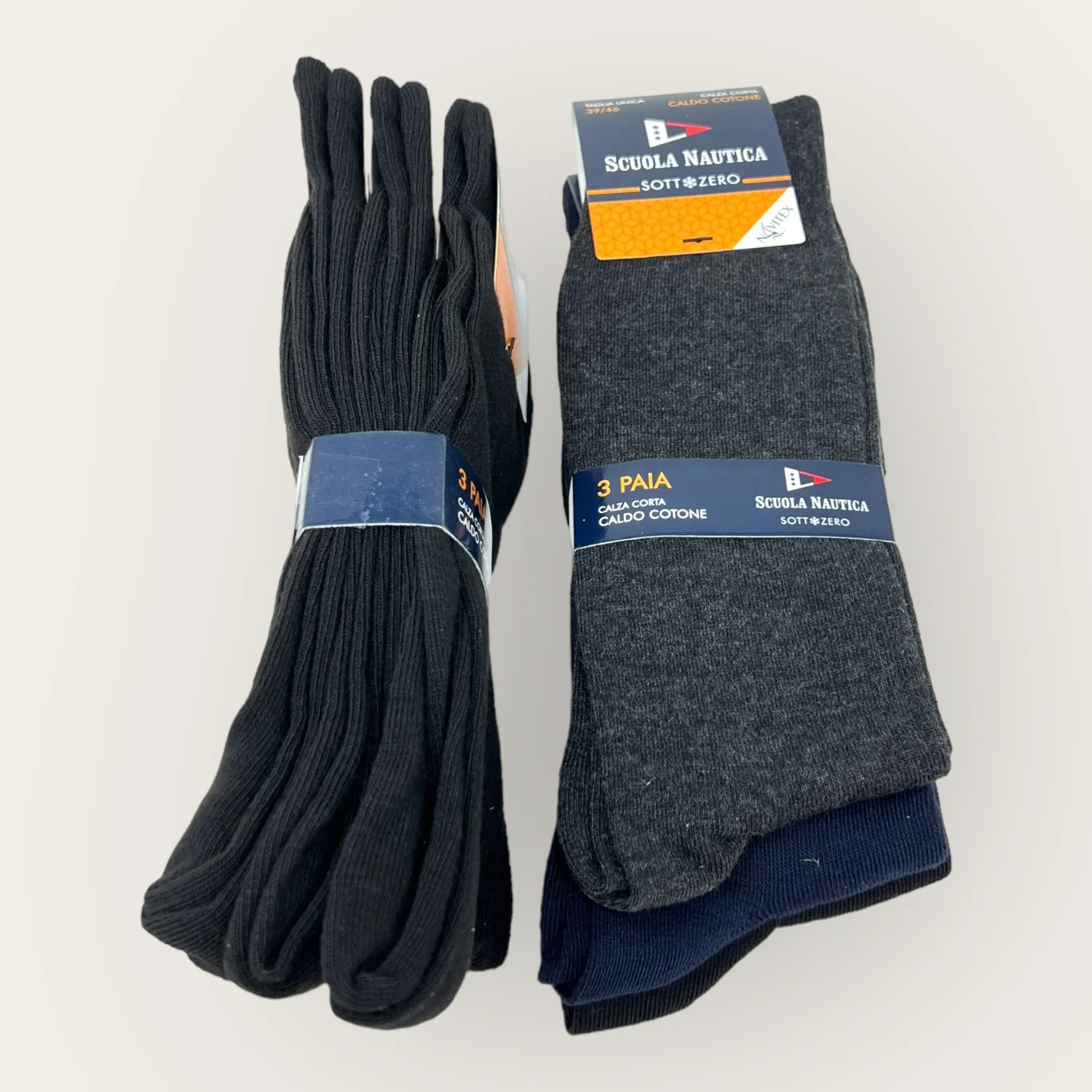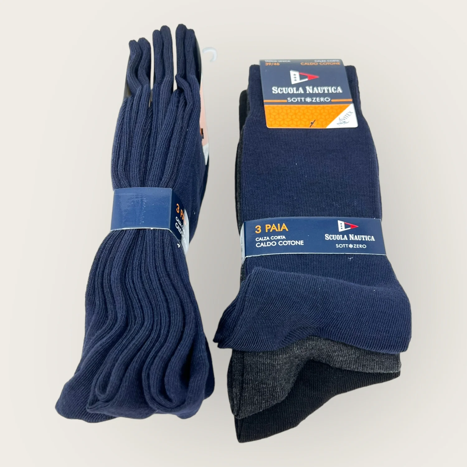 Scuola Nautica Invernale -3 Paia Calza Uomo Corta Tinta Unita In Caldo Cotone- Art. Sn300