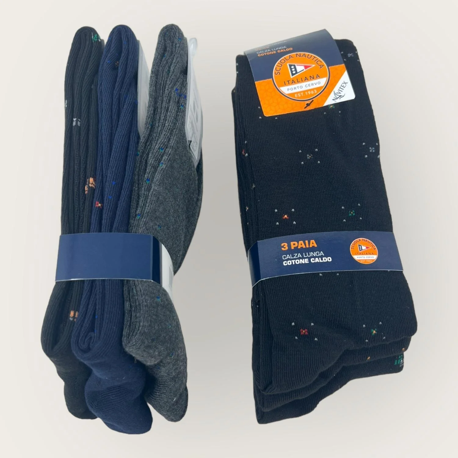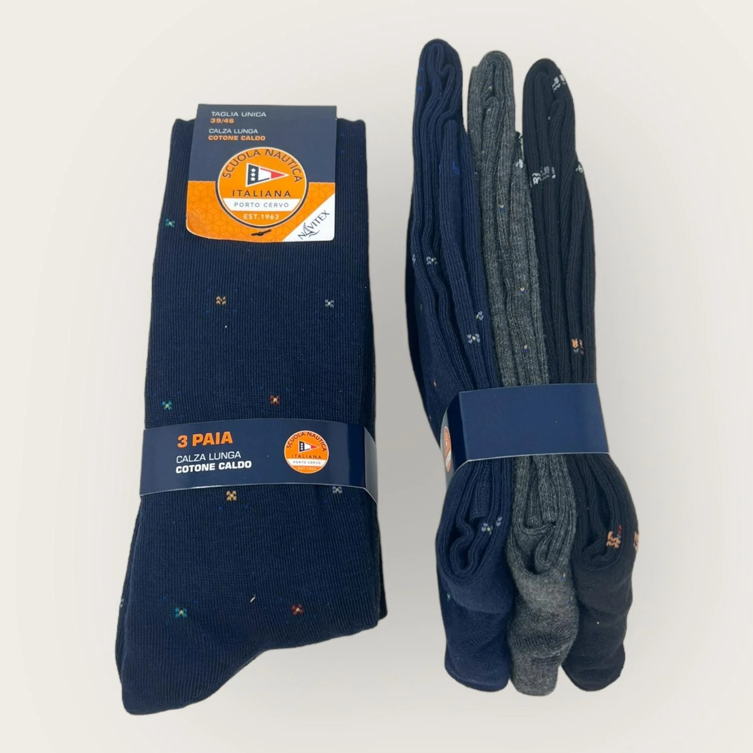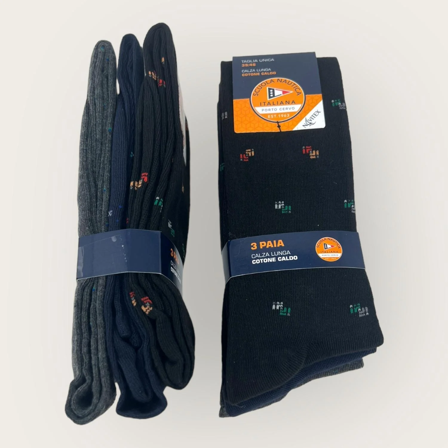 Sn309 Calza – Scuola Nautica Invernale -3 Paia Calza Uomo Lunga Fantasia Assortite In Caldo Cotone-