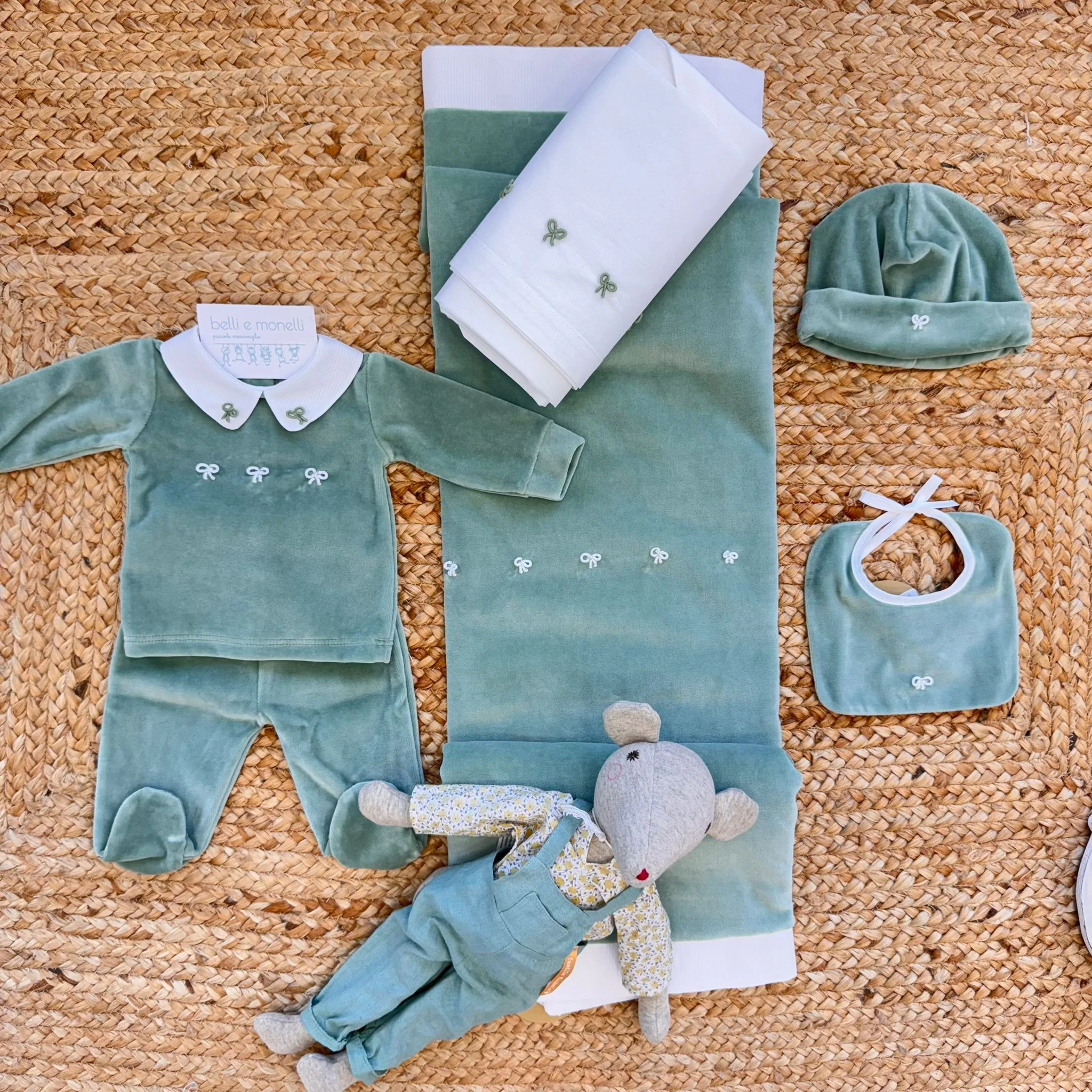 Set Nascita ciniglia verde salvia neonata