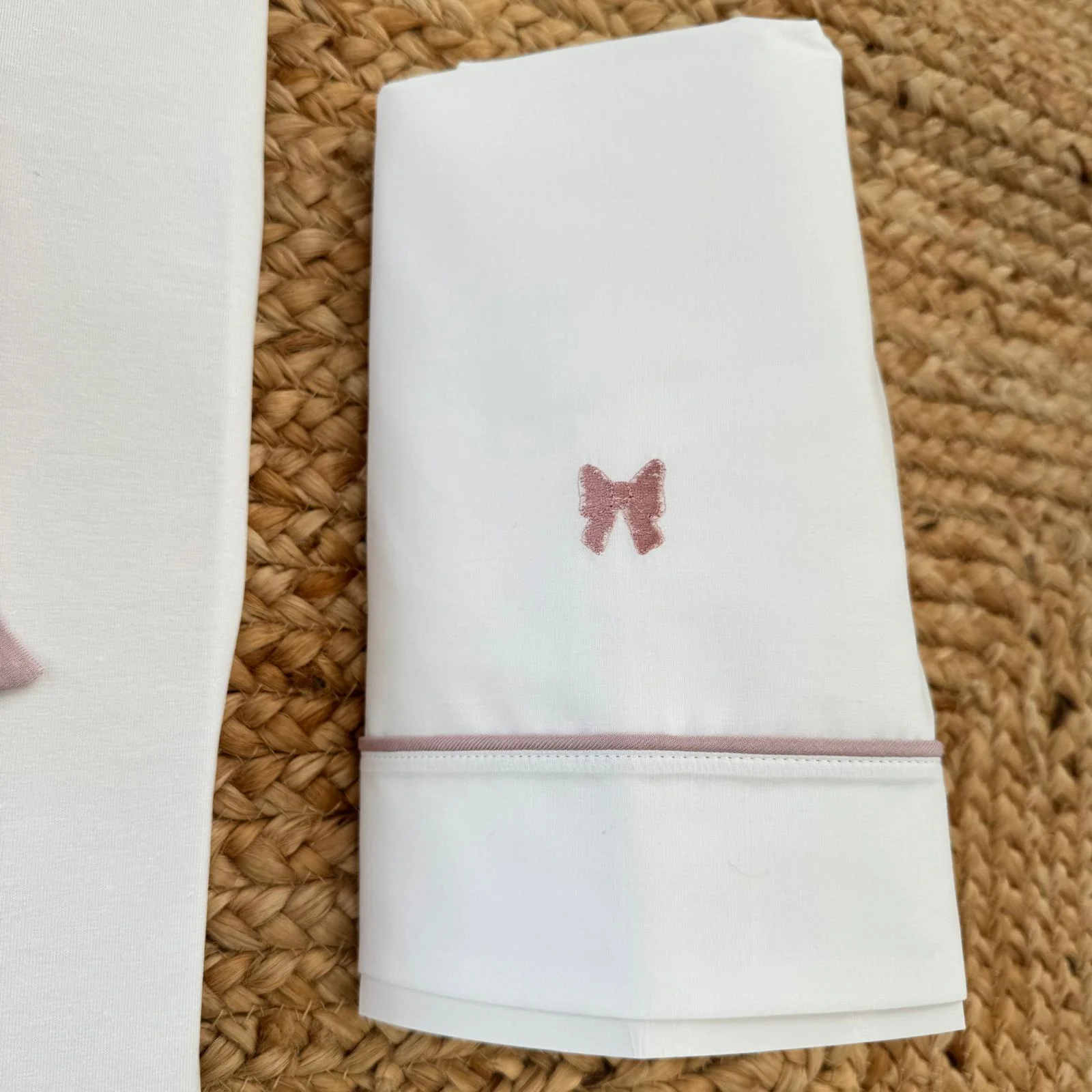 ✔ Lenzuolo bianco con ricamo fiocco rosa
