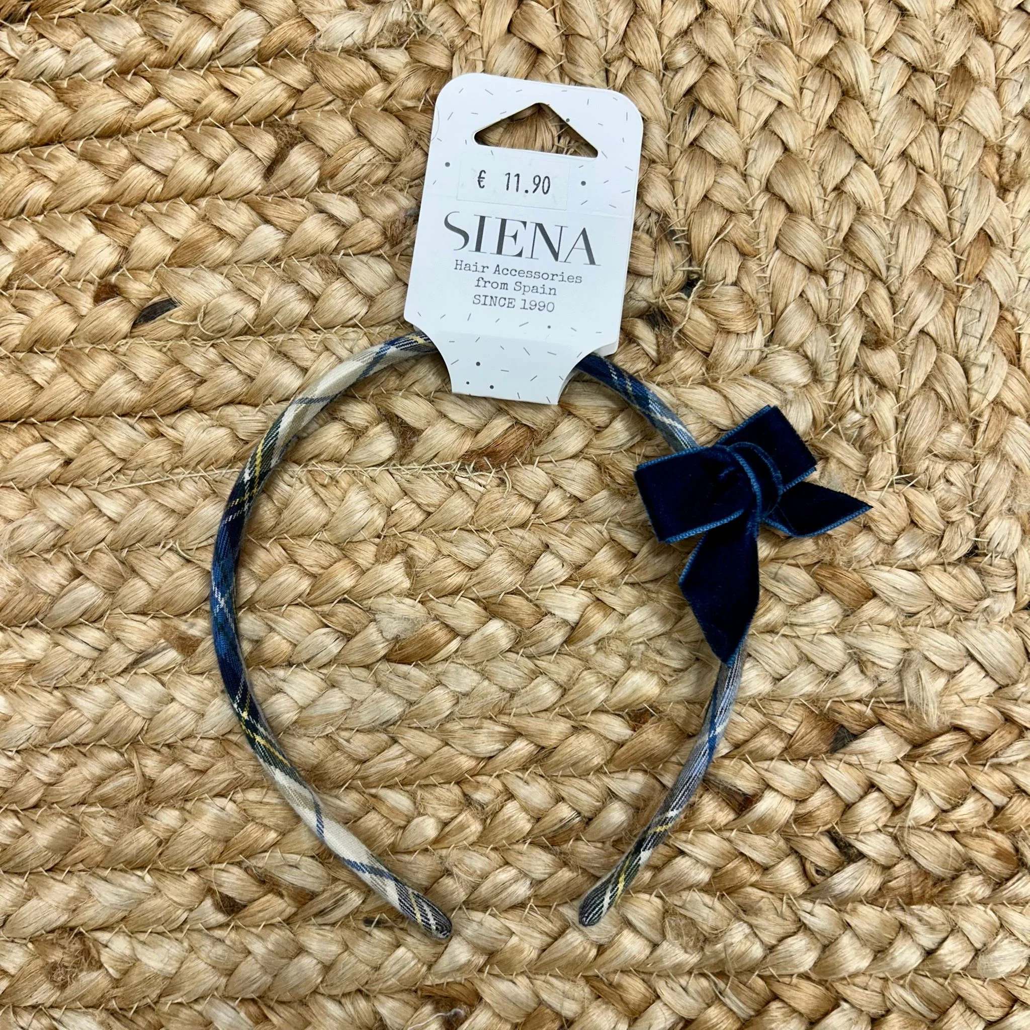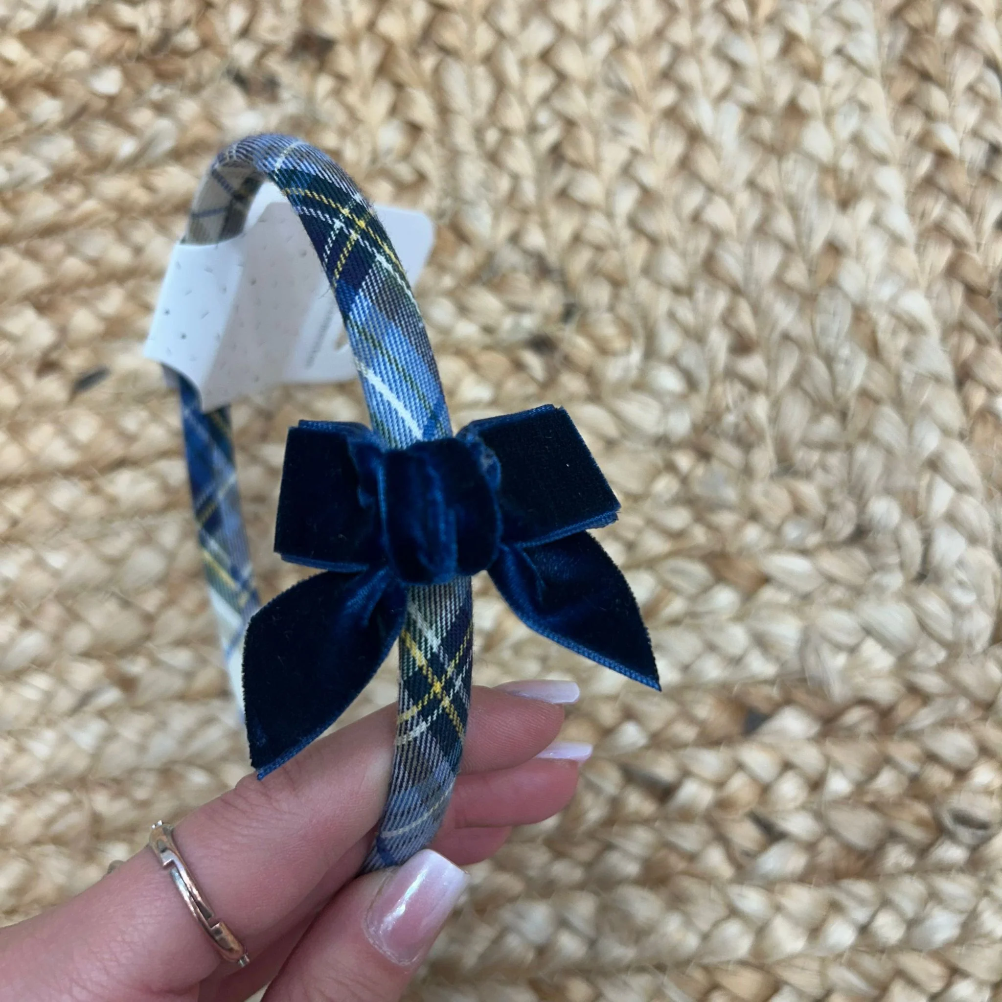 Siena cerchietto bimba scozzese con fiocco velluto blu