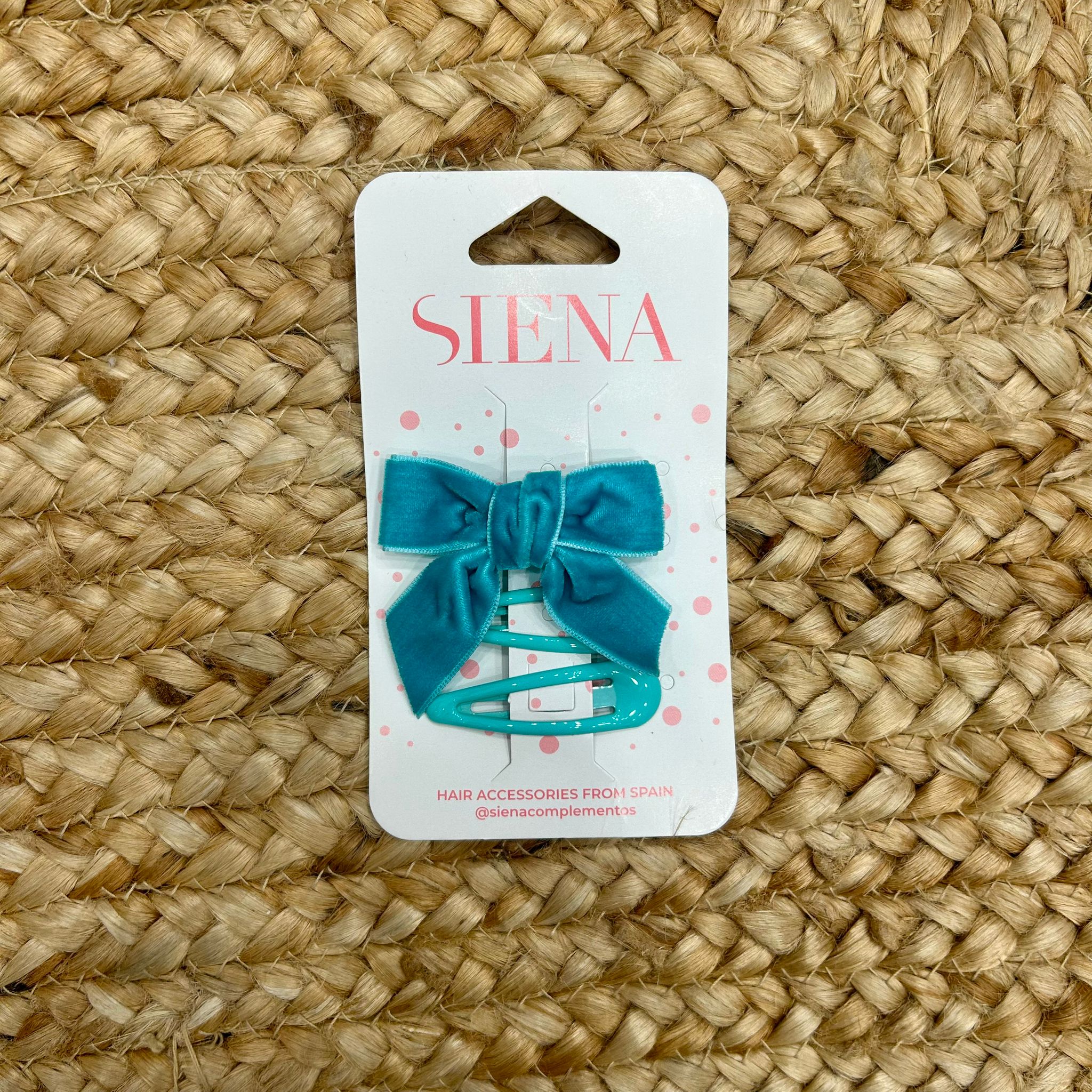 Siena fermagli bimba turchese velluto