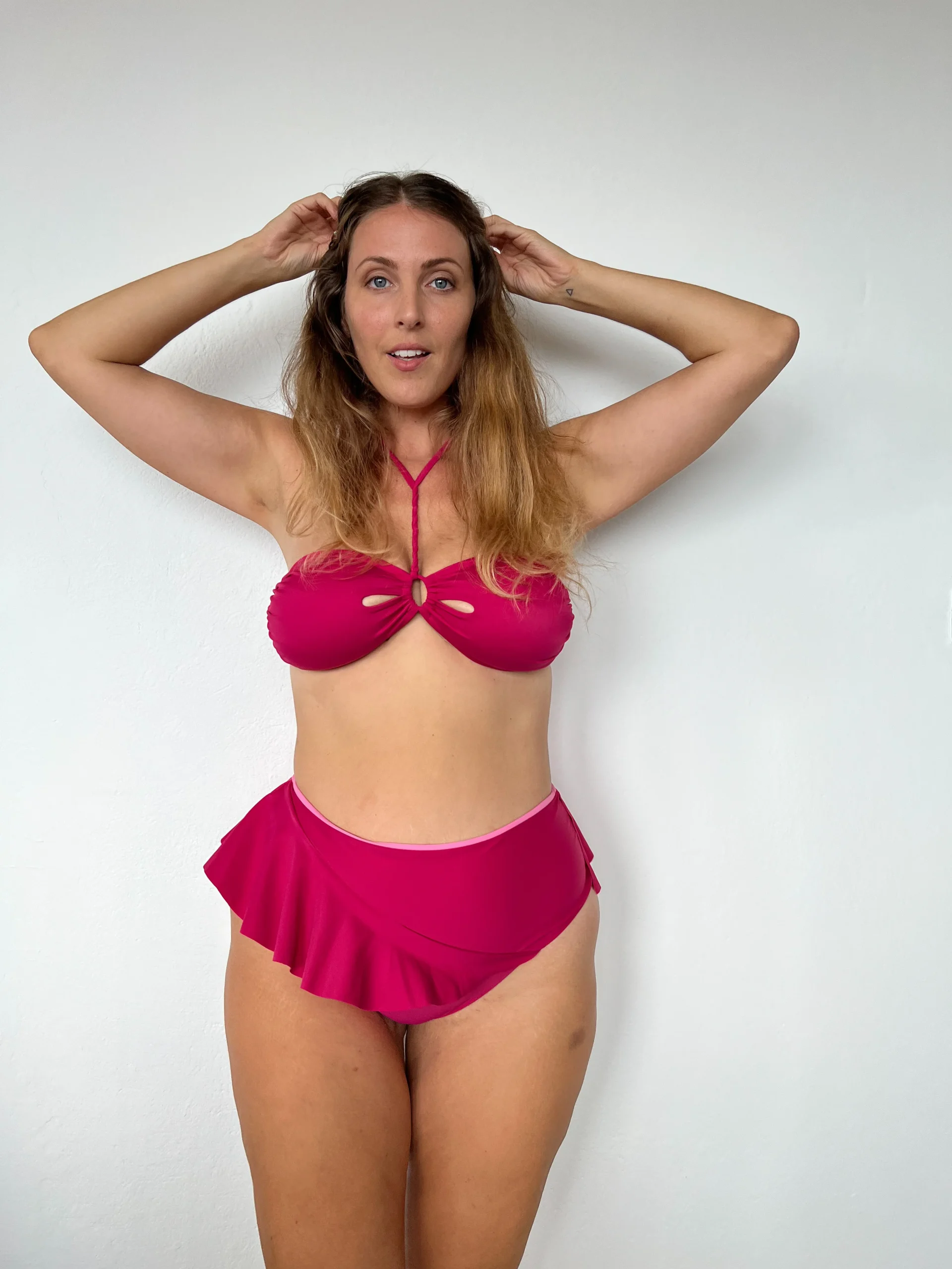 Il costume dice: “Sono allegra e un po’ frù frù, puoi girarmi su e giù, il volant di qua e di là come vuoi apparirà. Se diverto anche te, devi avermi nell’estate 2023!”