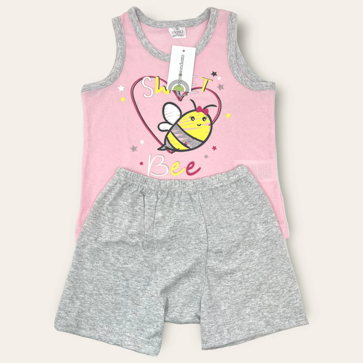 Sognosondesto Pigiama Baby Femminuccia -pantalone Corto Spalla Larga -in Puro Cotone Stampato Art. Esg23102