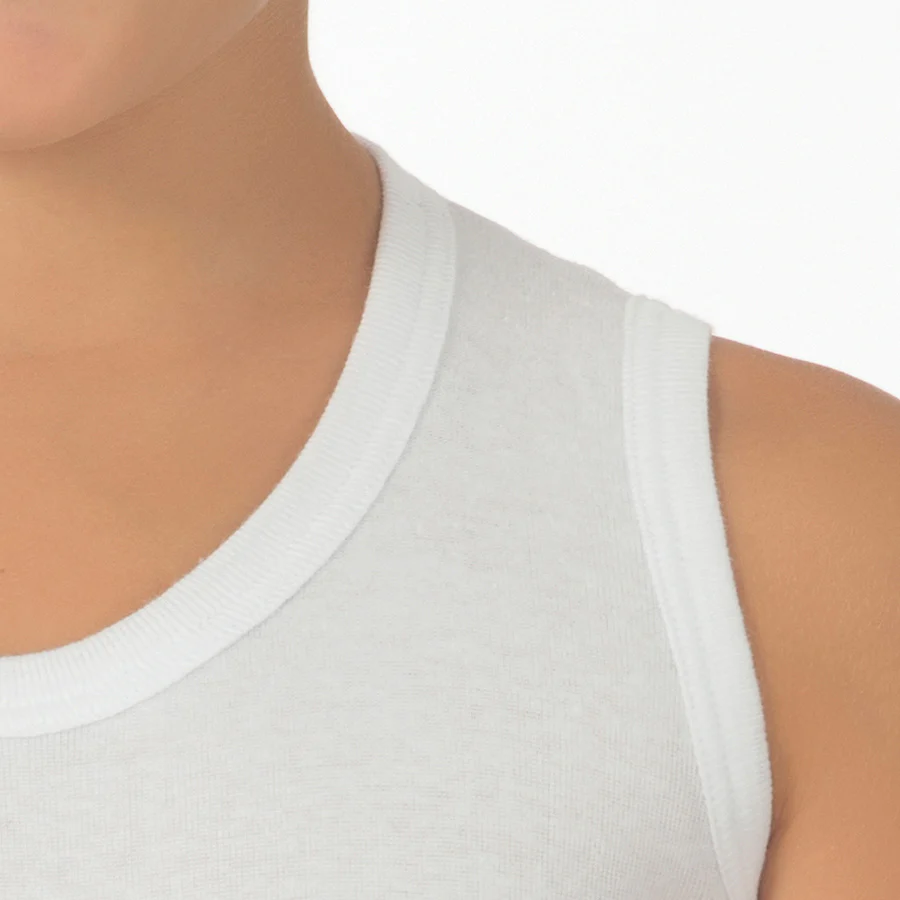 Canottiera a spalla larga per bambino in cotone 100%, ideale per la biancheria intima quotidiana. Morbida, traspirante e delicata sulla pelle sensibile dei più piccoli.