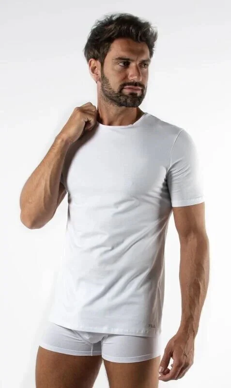 T-shirt Uomo Fila Underwear mezza manica girogola in cotone elasticizzato articolo FU5002. Perfetta per l’uso quotidiano e sportivo, offre comfort e vestibilità ottimale grazie al tessuto in cotone elasticizzato morbido e traspirante. Il design sportivo con logo Fila garantisce stile e qualità.