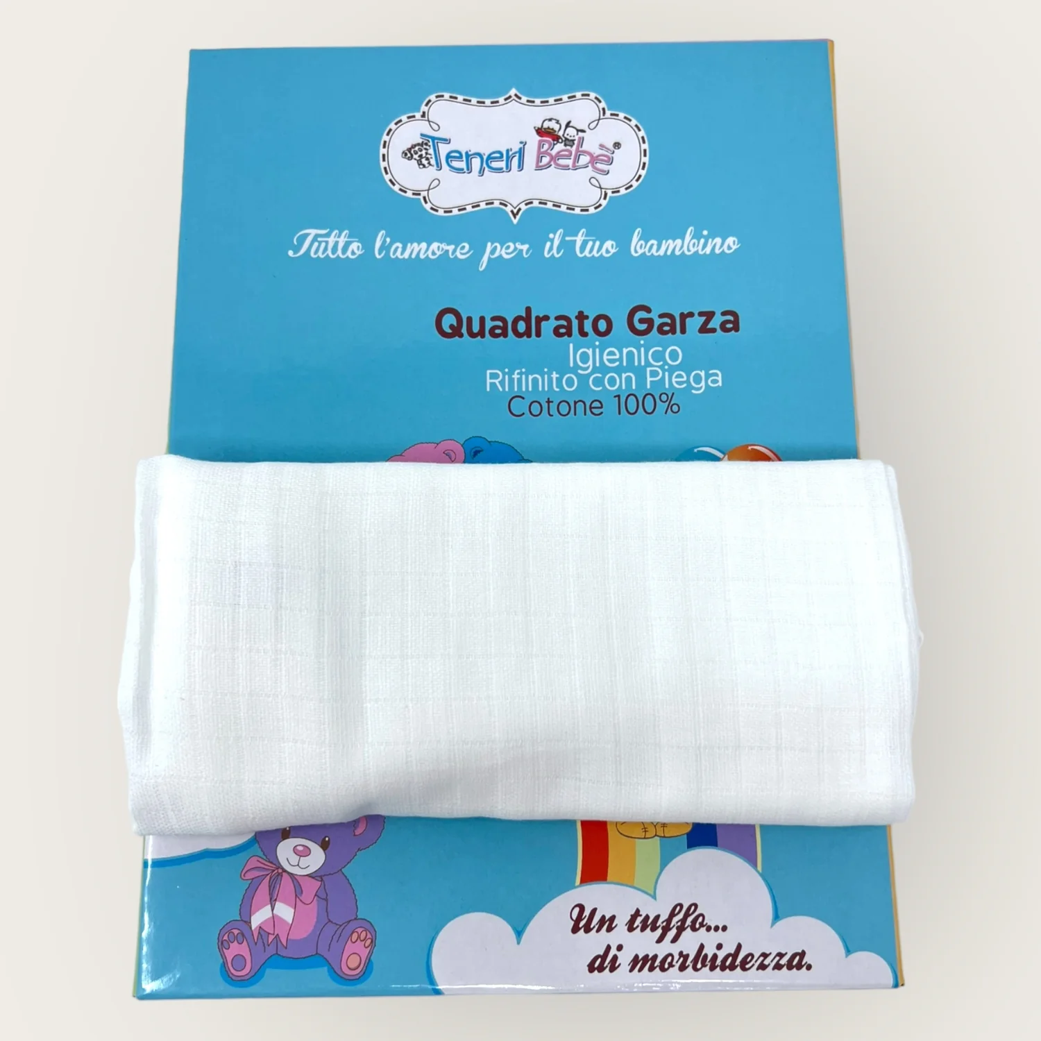 505 Quadrato – Teneri Bebe’ -6 Pezzi- Quadrato Garza Per Neonato Igienico In Puro Cotone Rifinito Con Piega 75×75