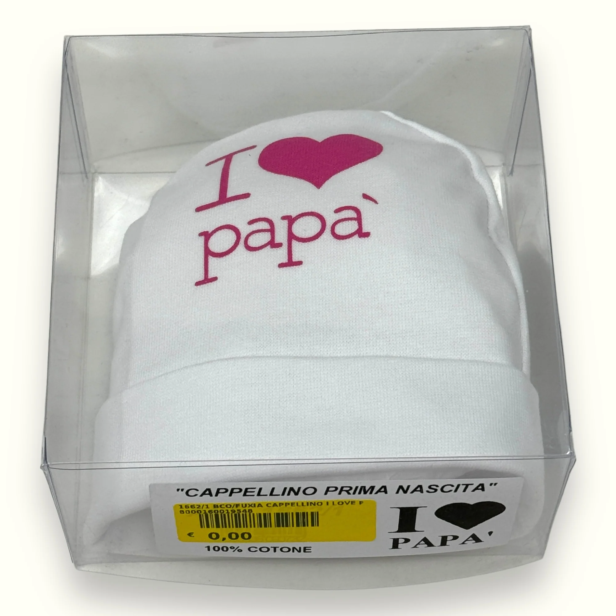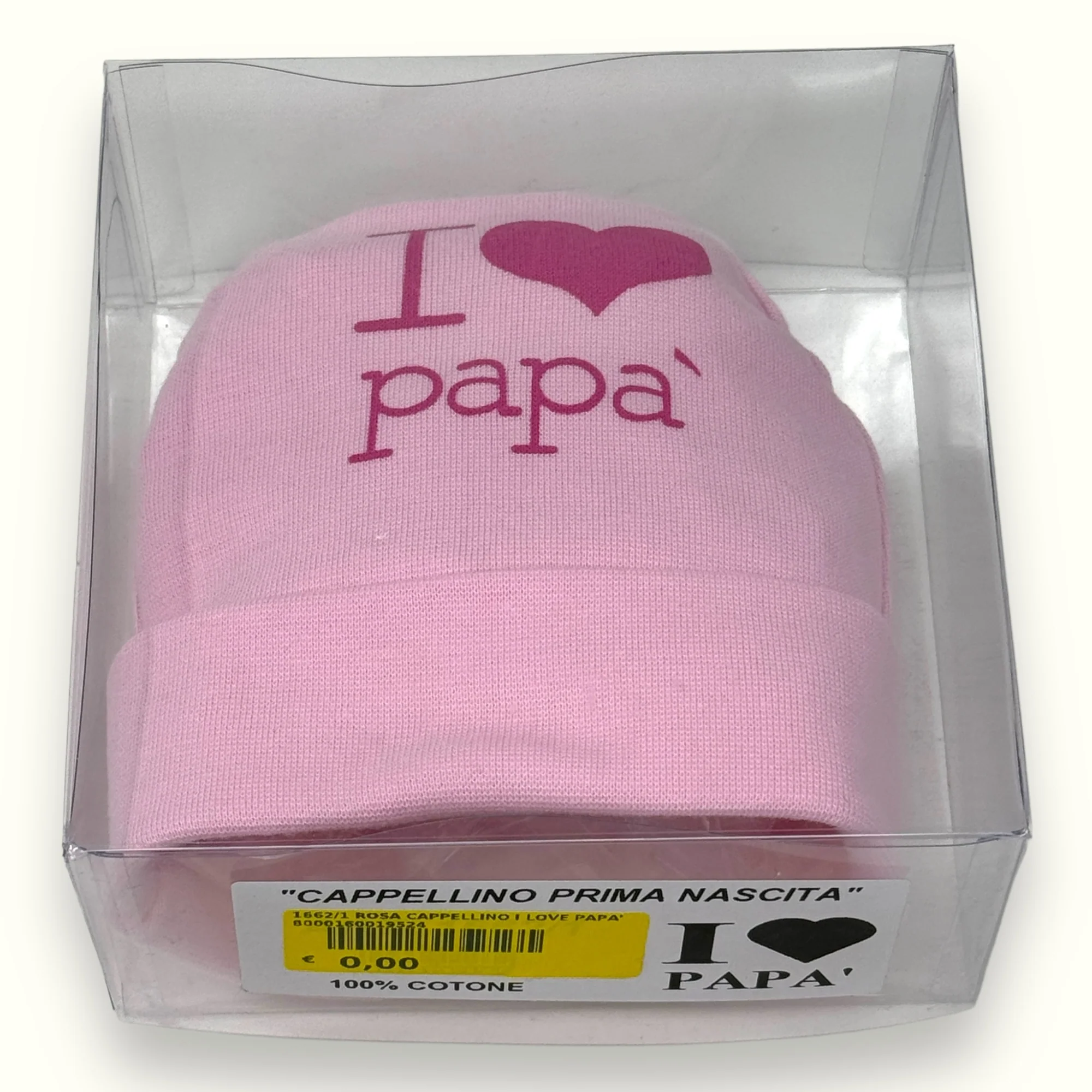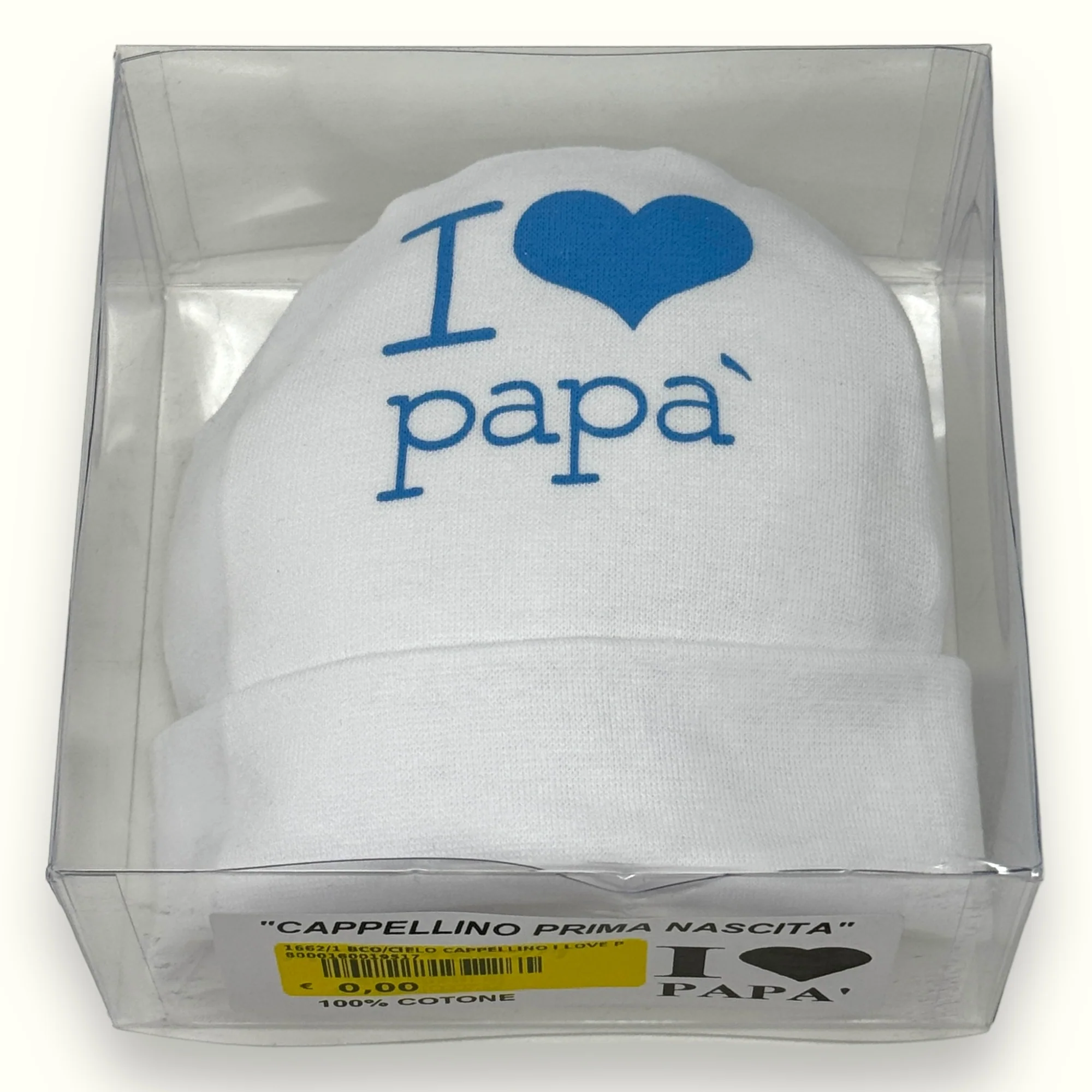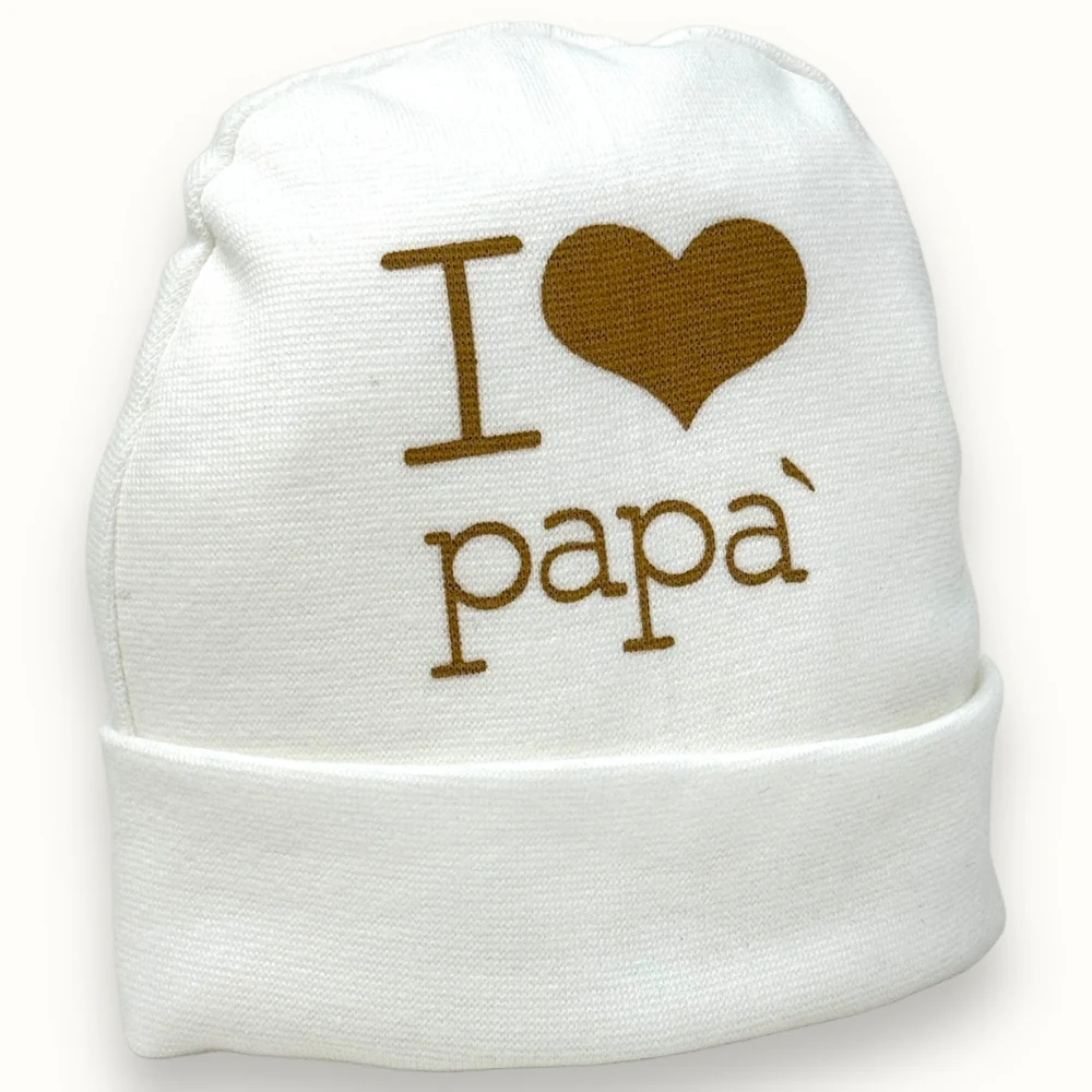 1662-1 Cappello – -teneri Bebe’- Cappello Baby In Puro Cotone Con Stampa I Love Papa’