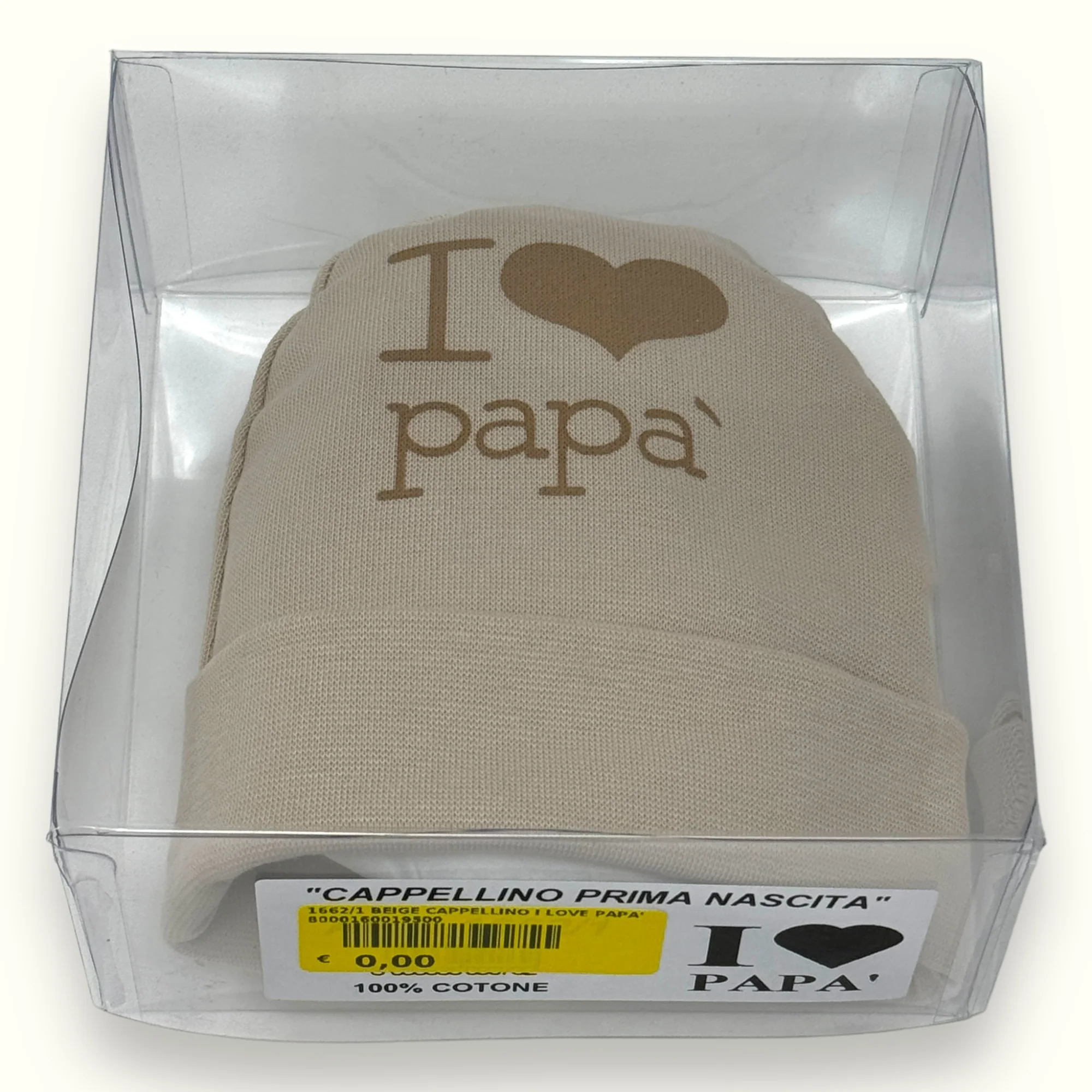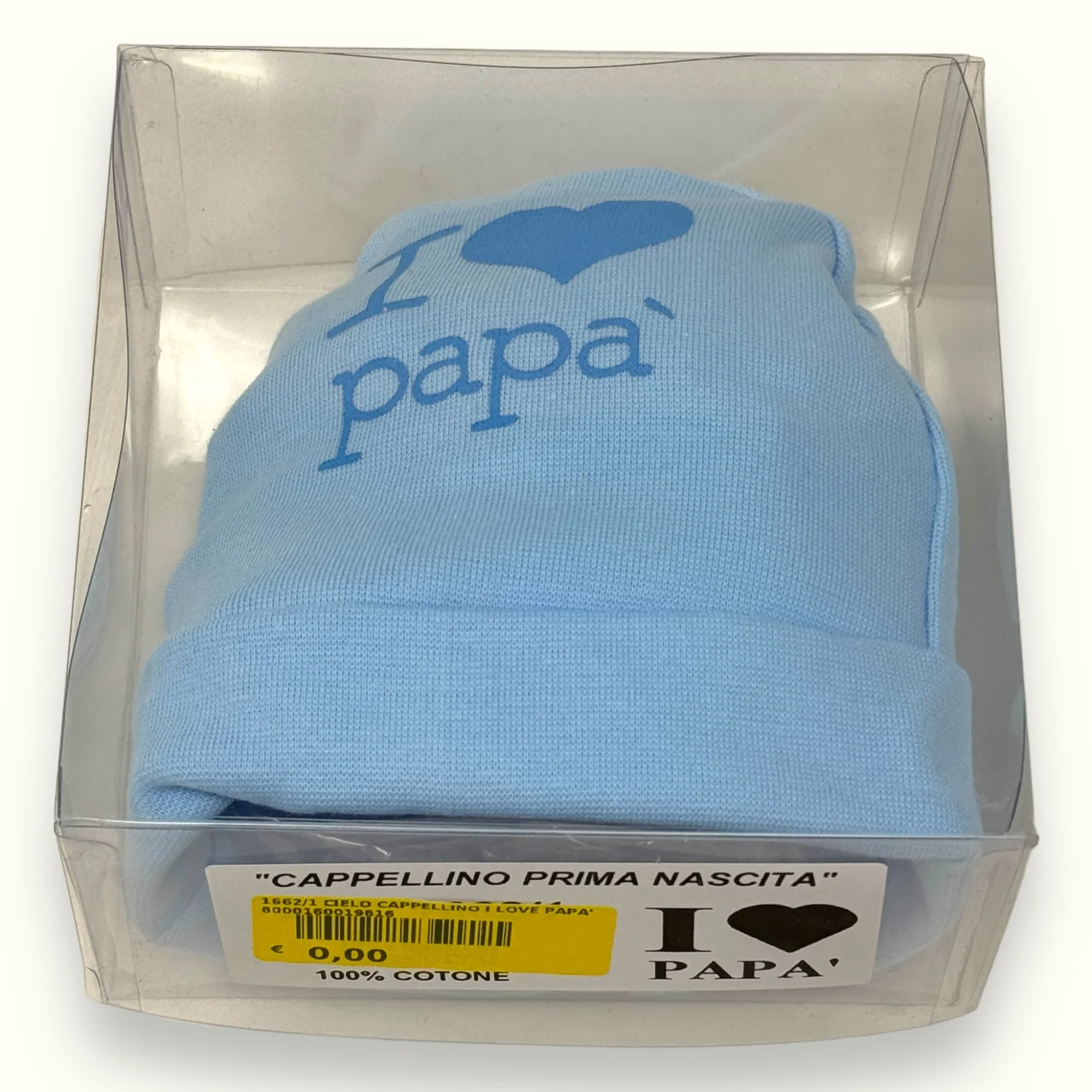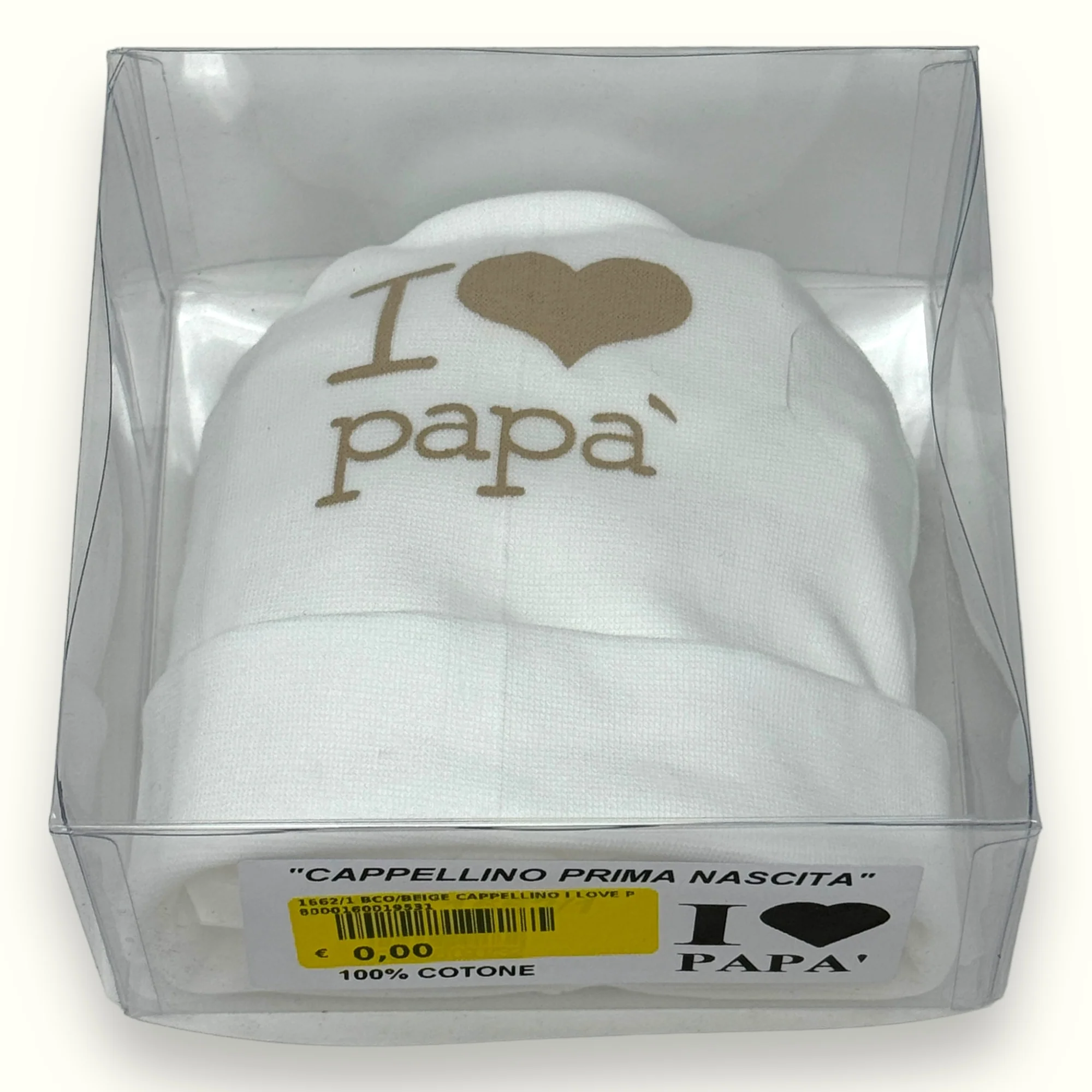 1662-1 Cappello – -teneri Bebe’- Cappello Baby In Puro Cotone Con Stampa I Love Papa’