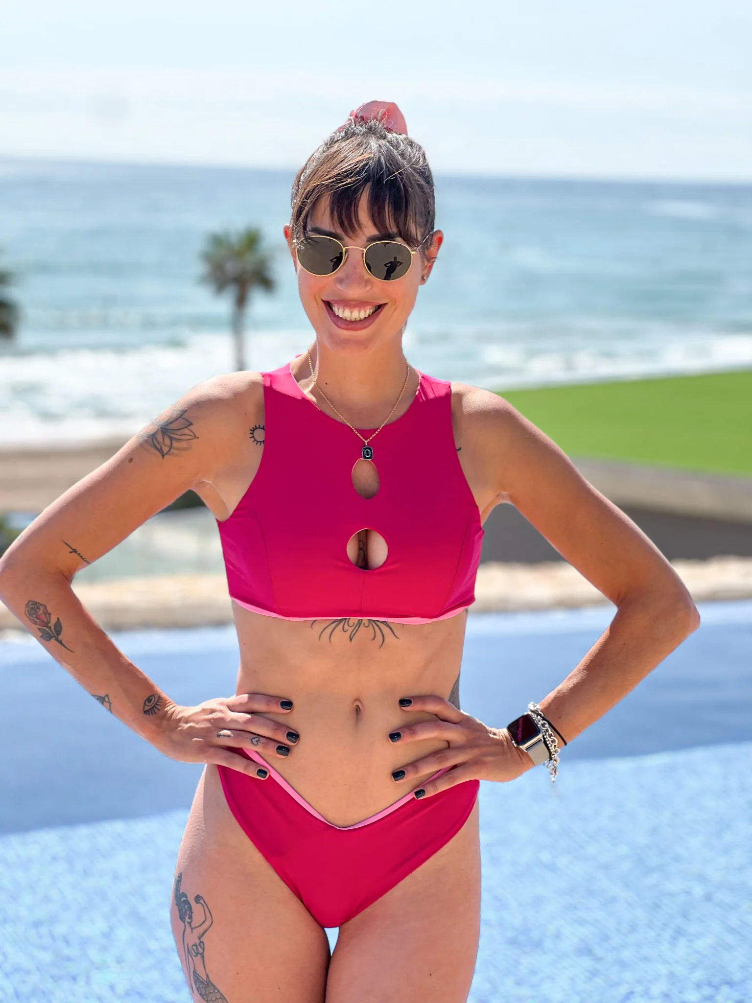Il nuovo top goccia detto anche “troppo Top questo Drop-Top”reversibile ed impreziosito da due aperture che ricordano la forma di due gocce si può usare come bikini o top a vista.