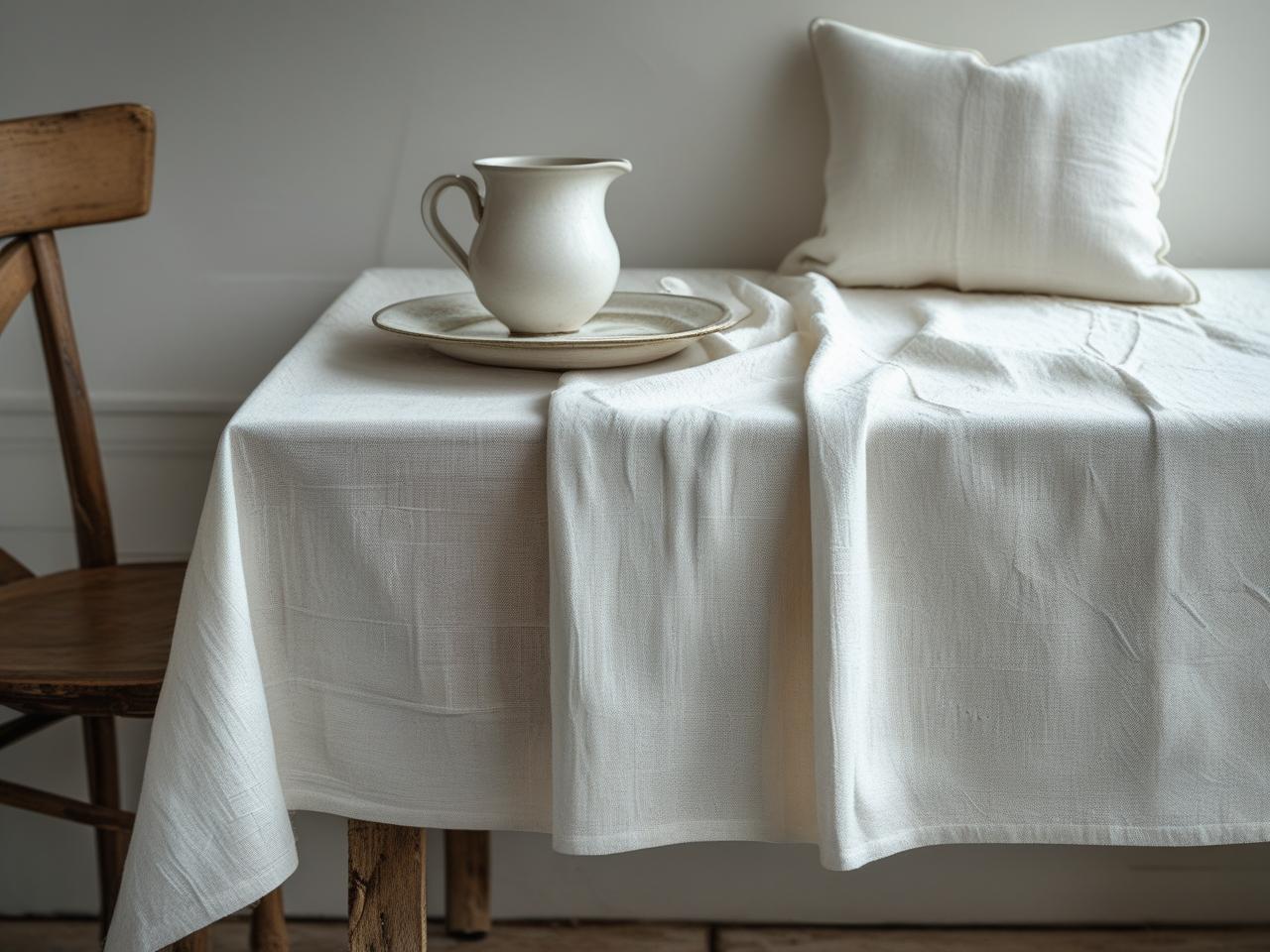 Tovaglia di Lusso RUBINO Jacquard Misto Lino – Design Tela Aida – Su Misura (Bianco/Avorio)