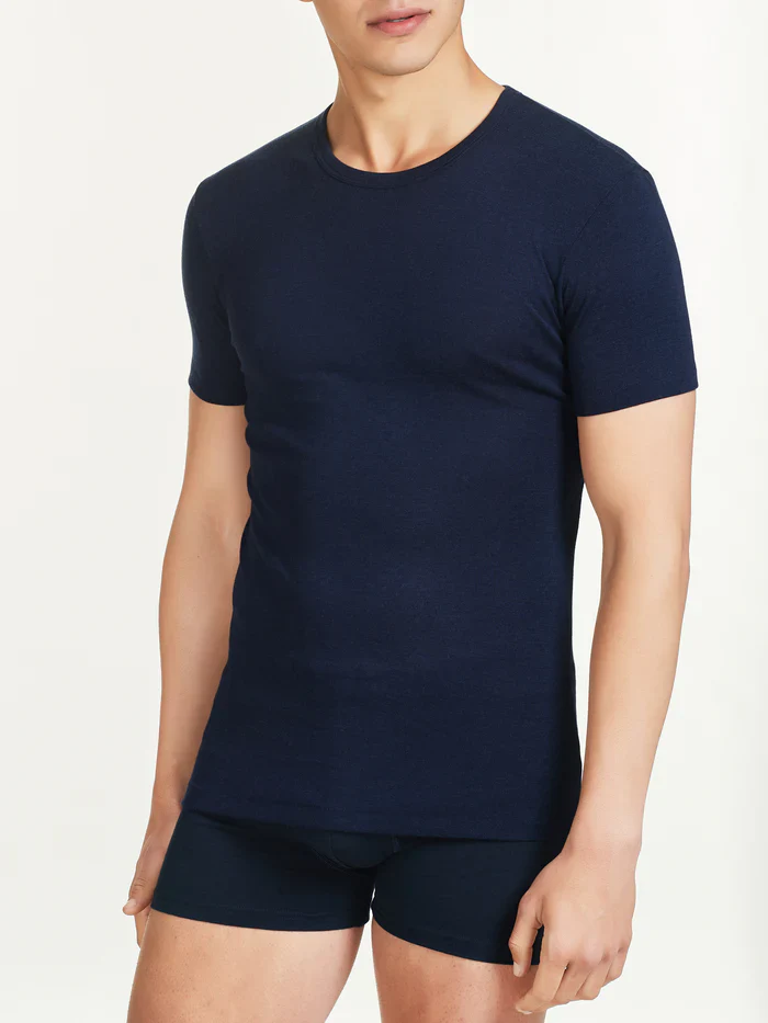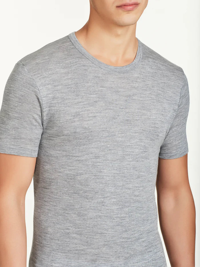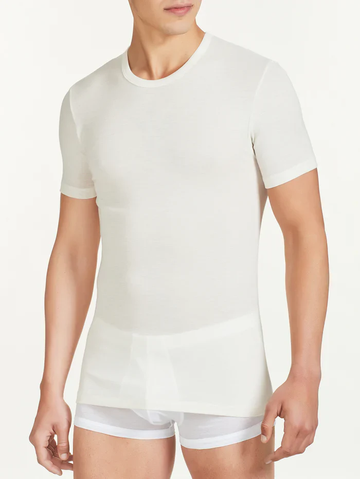 Maglietta girocollo a manica corta di lana e seta, non punge e non pizzica.