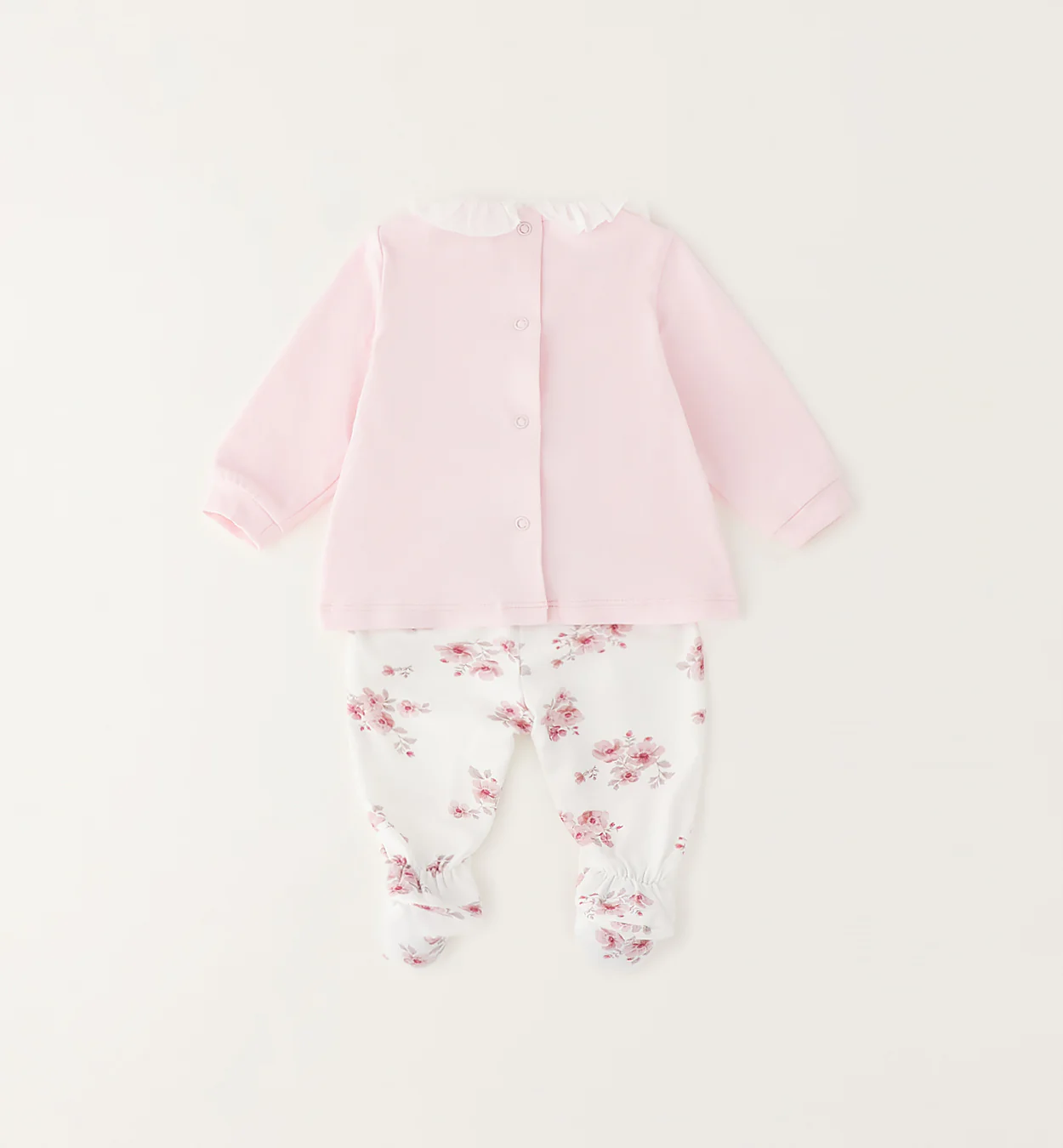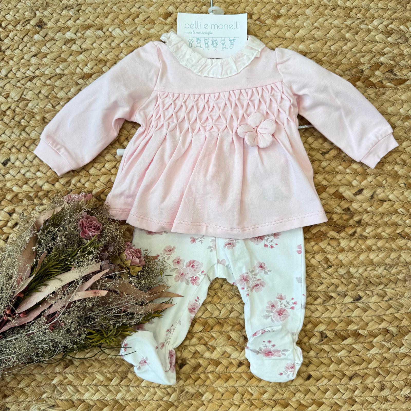 Un piccolo capolavoro di dolcezza pensato per i suoi primi mesi. Questa tutina per neonata in 100% cotone unisce eleganza e comfort in un completo due pezzi raffinato, perfetto per vestire la tua bambina con cura e delicatezza ogni giorno.