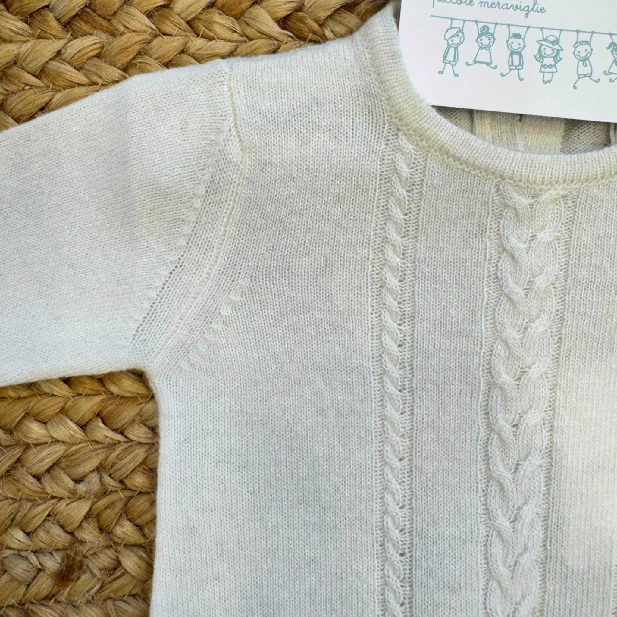 Tutina lunga per neonato/a in raffinato filato (40% lana, 30% viscosa, 20% poliammidica, 10% cashmere), impreziosita da lavorazione a trecce sul davanti e bottoncini madreperla. Il coordinato completo di scarpe da ginnastica è morbido, elegante e confortevole, ideale per il corredino di nascita, il set di nascita, l’uscita clinica e come prezioso regalo per il baby shower. Che ci crediate o no, i vostri bambini cambieranno il mondo.