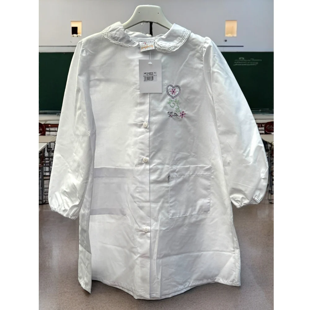 24486 Gre – -giorgio Rey- Grembiule Scuola Bianco Elementare Femminuccia Con Ricamo E Applicazione In Pizzo