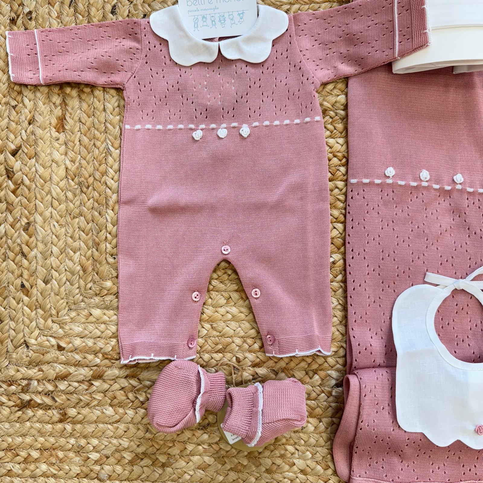 • ✔ Tutina intera in 100% cotone rosa con lavorazione traforata