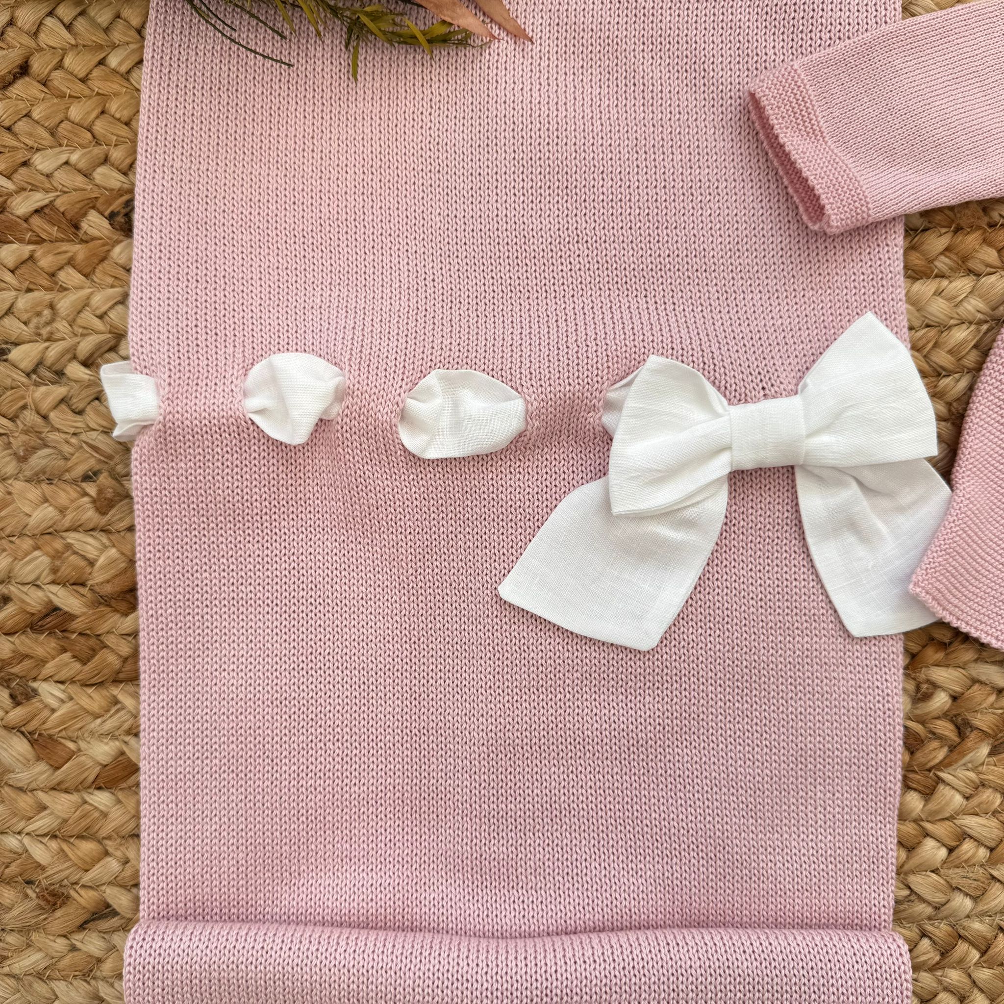 Uscita clinica neonata in 100% filo di cotone rosa con fiocchi