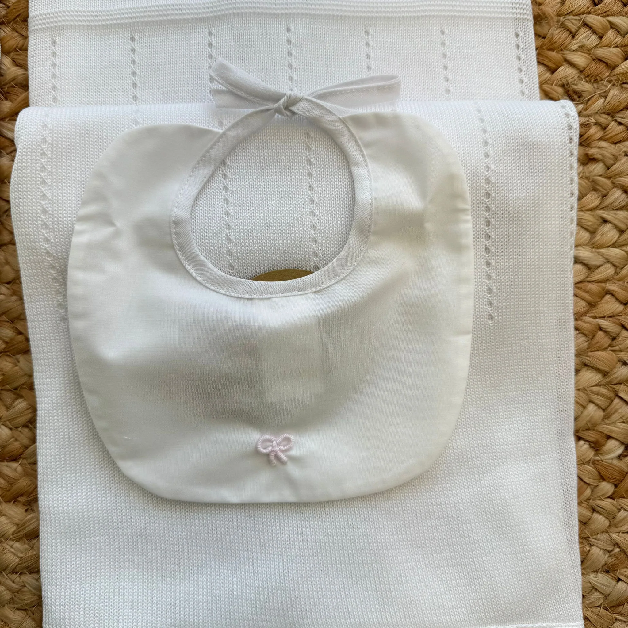 Bavetta bianca con laccetto regolabile e fiocco ricamato