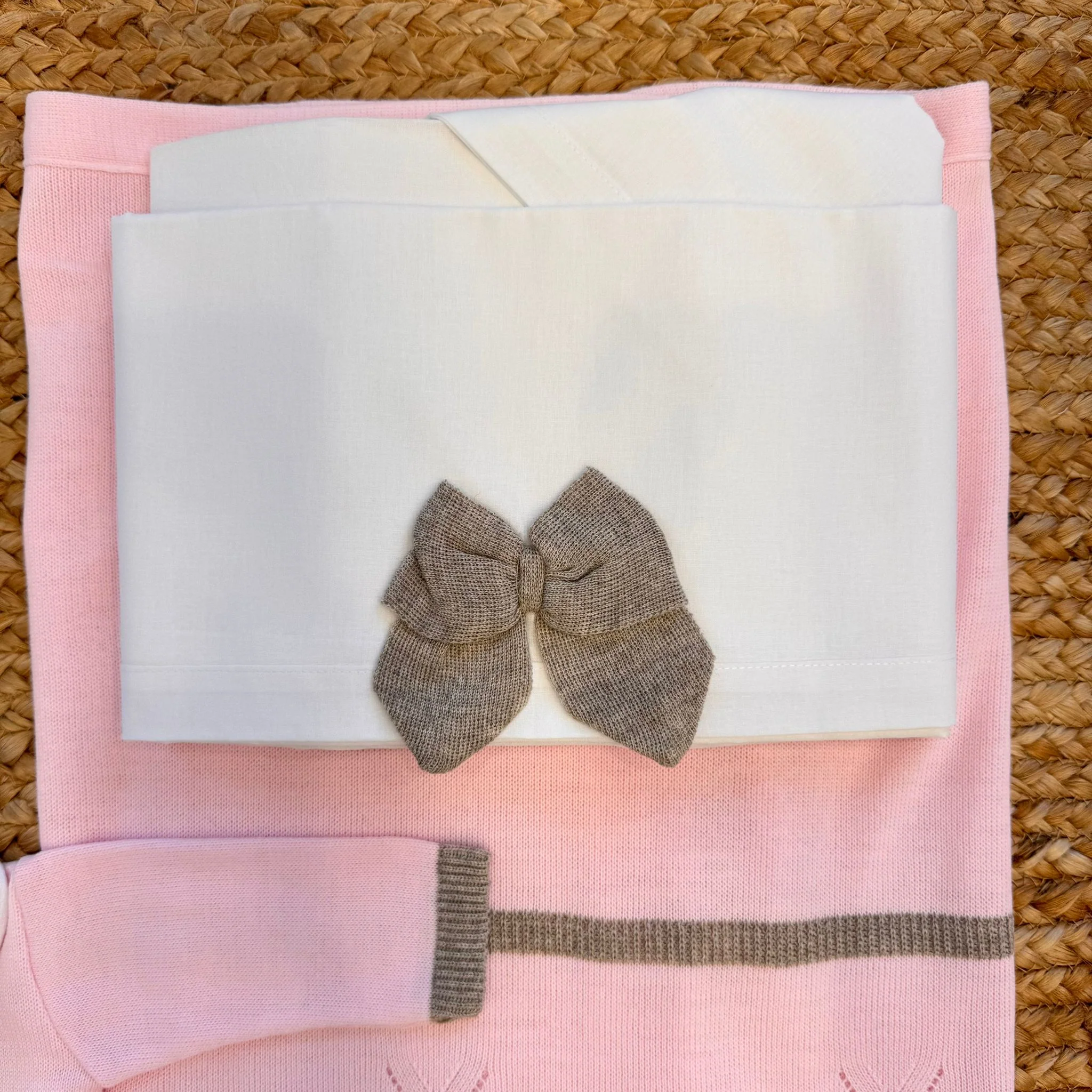 Questo raffinato set uscita clinica per neonata è realizzato in misto lana rosa con dettagli in tortora. Comprende abito con pantalone, copertina coordinata, cappellino, scarpette, bavetta e lenzuola. Il fiocco tortora centrale e le lavorazioni traforate donano eleganza artigianale a un corredino prezioso, ideale come set nascita. Che ci crediate o no, i vostri bambini cambieranno il mondo.