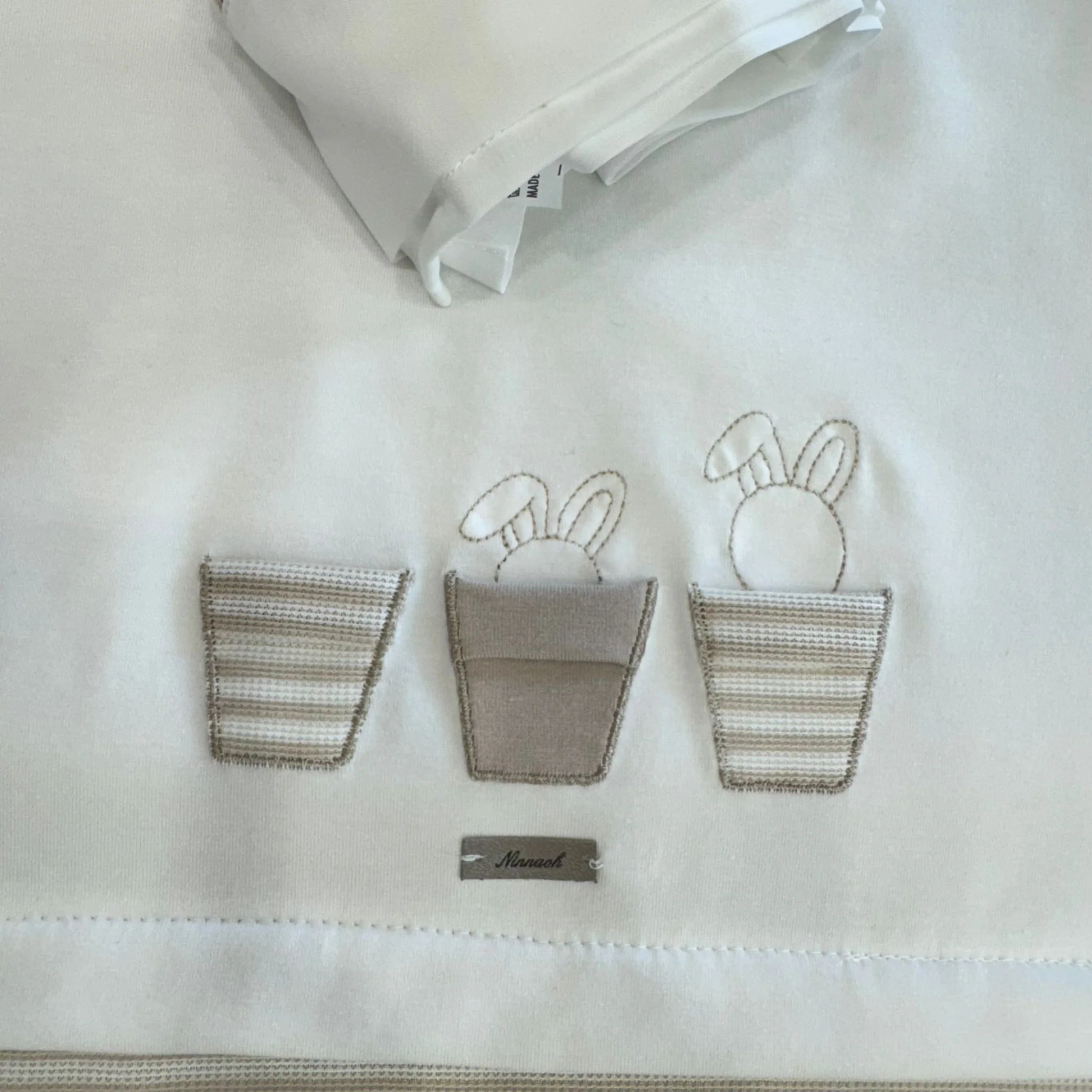 * Design Coordinato: Il set include maglia a maniche lunghe con colletto, pantalone con piedini (ghettina), cuffietta, bavaglino e copertina sfoderabile ,con imbottitura inclusa nel prezzo.