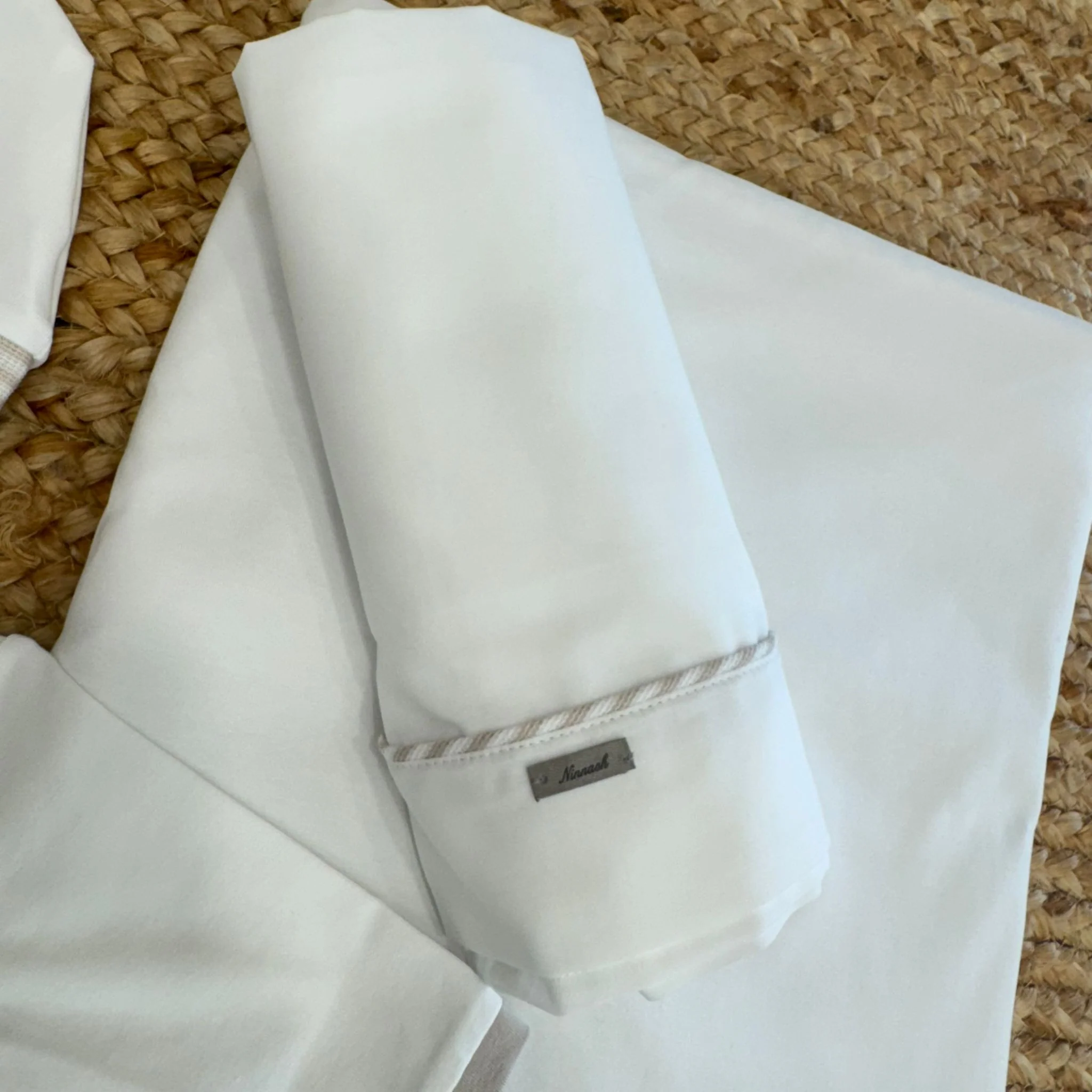 Il primo abbraccio è una questione di stile e delicatezza. Immagina di accogliere il tuo piccolo in un mondo di estrema morbidezza, dove il candore del bianco incontra la raffinatezza delle tonalità naturali. Questo esclusivo set coordinato non è solo un insieme di capi, ma un vero e proprio rituale di benvenuto, pensato per chi cerca il massimo comfort senza rinunciare a un’estetica ricercata e senza tempo.