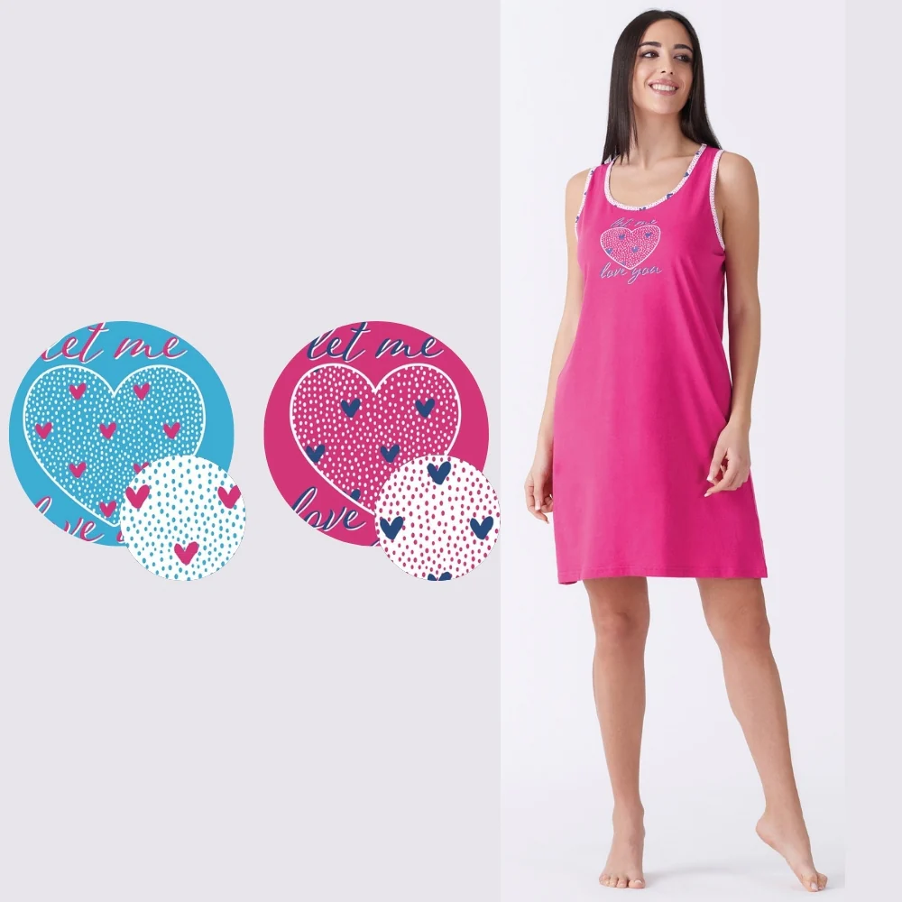 Sv6851cg – -vanue’ Estate- Abitino Casa Donna Spalla Larga Con Stampa In Puro Cotone
