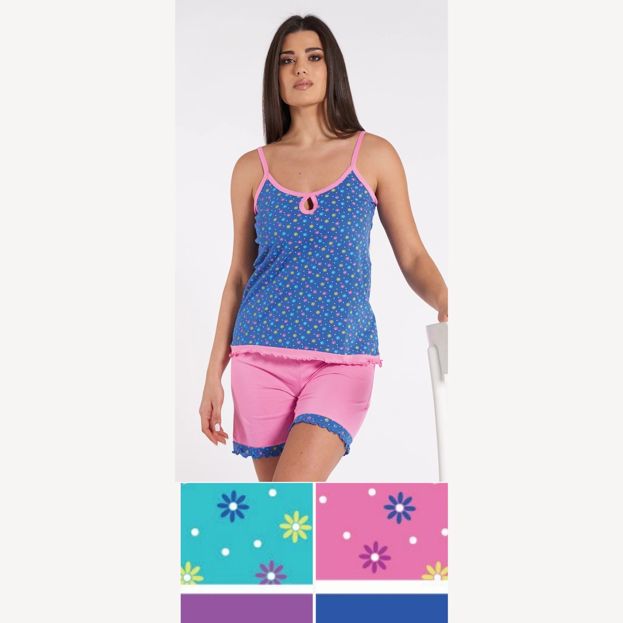 Vs0120pb – Vanue’ Estate Pigiama Donna Corto Spalla Stretta Fantasia In Puro Cotone