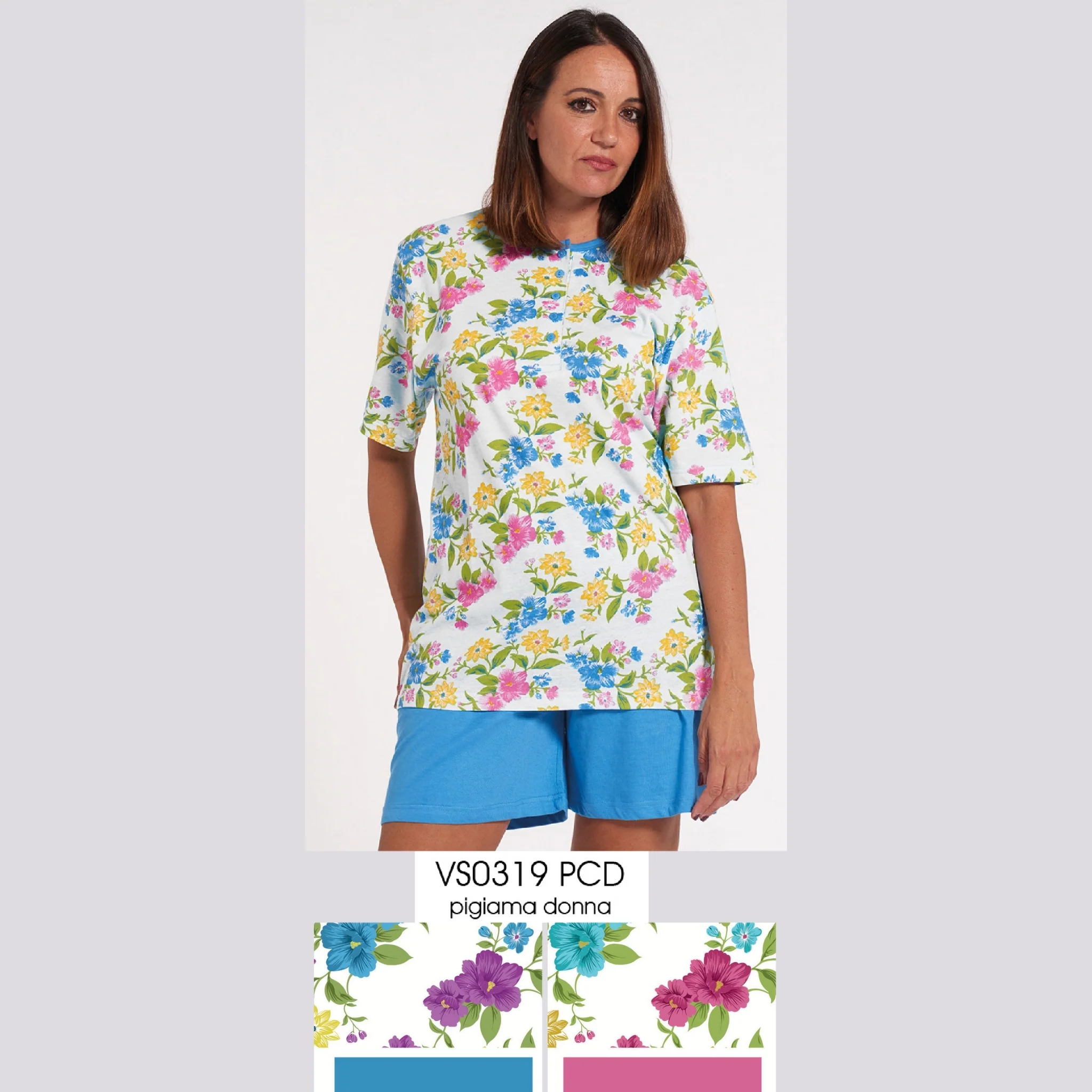 Vs0319pcd – -vanue’ Estate- Pigiama Donna Aperto Corto In Puro Cotone Fantasia