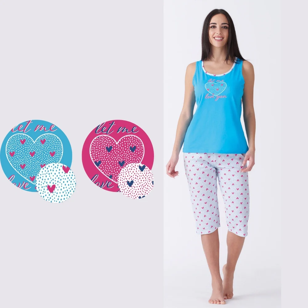 Sv6848pgpx – -vanue’ Estate- Pigiama Donna Corto Calibrato Spalla Larga Con Stampa In Puro Cotone