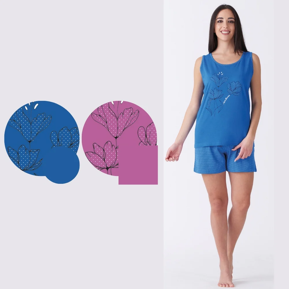 Sv6820pgd – -vanue’ Estate- Pigiama Donna Corto Spalla Larga Con Stampa In Puro Cotone