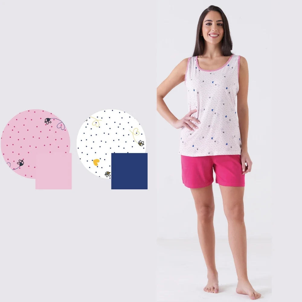 Sv6834pgd – -vanue’ Estate- Pigiama Donna Corto Spalla Larga Con Stampa In Puro Cotone