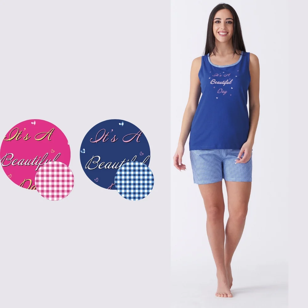 Sv6867pgd – -vanue’ Estate- Pigiama Donna Corto Spalla Larga Con Stampa In Puro Cotone