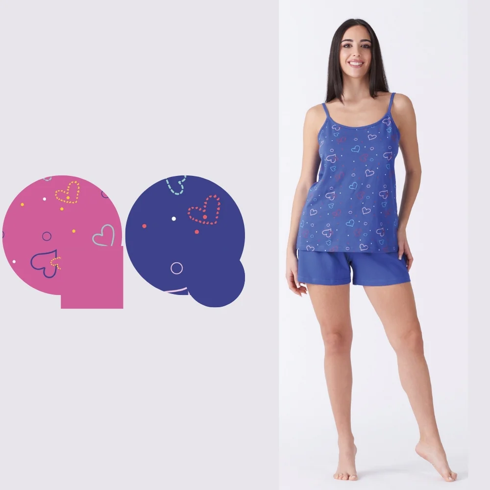 Sv6844pb – -vanue’ Estate- Pigiama Donna Corto Spalla Stretta Fantasia In Puro Cotone