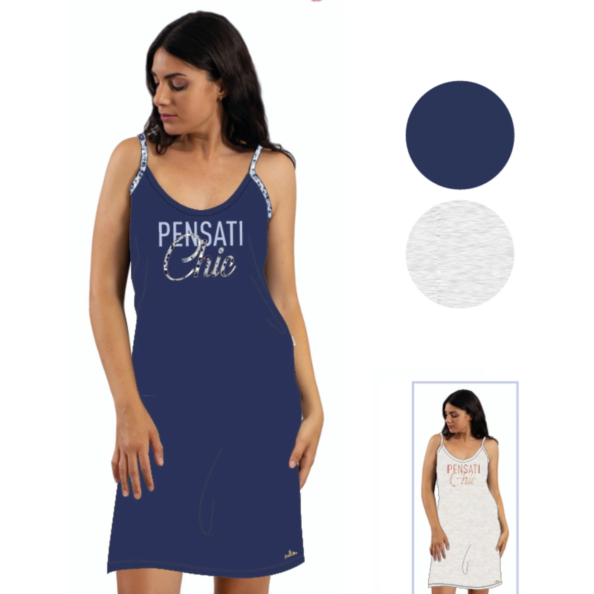 Ymc582 Abitino – -you&me Estate-abitino Casa Donna Spalla Stretta Con Stampa E Ricamo In Puro Cotone