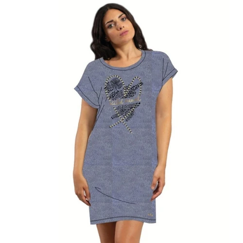 Y&m328 Can – -you&me Estate- Camicia Da Notte Donna Mezza Manica Stampata In Jersey Puro Cotone