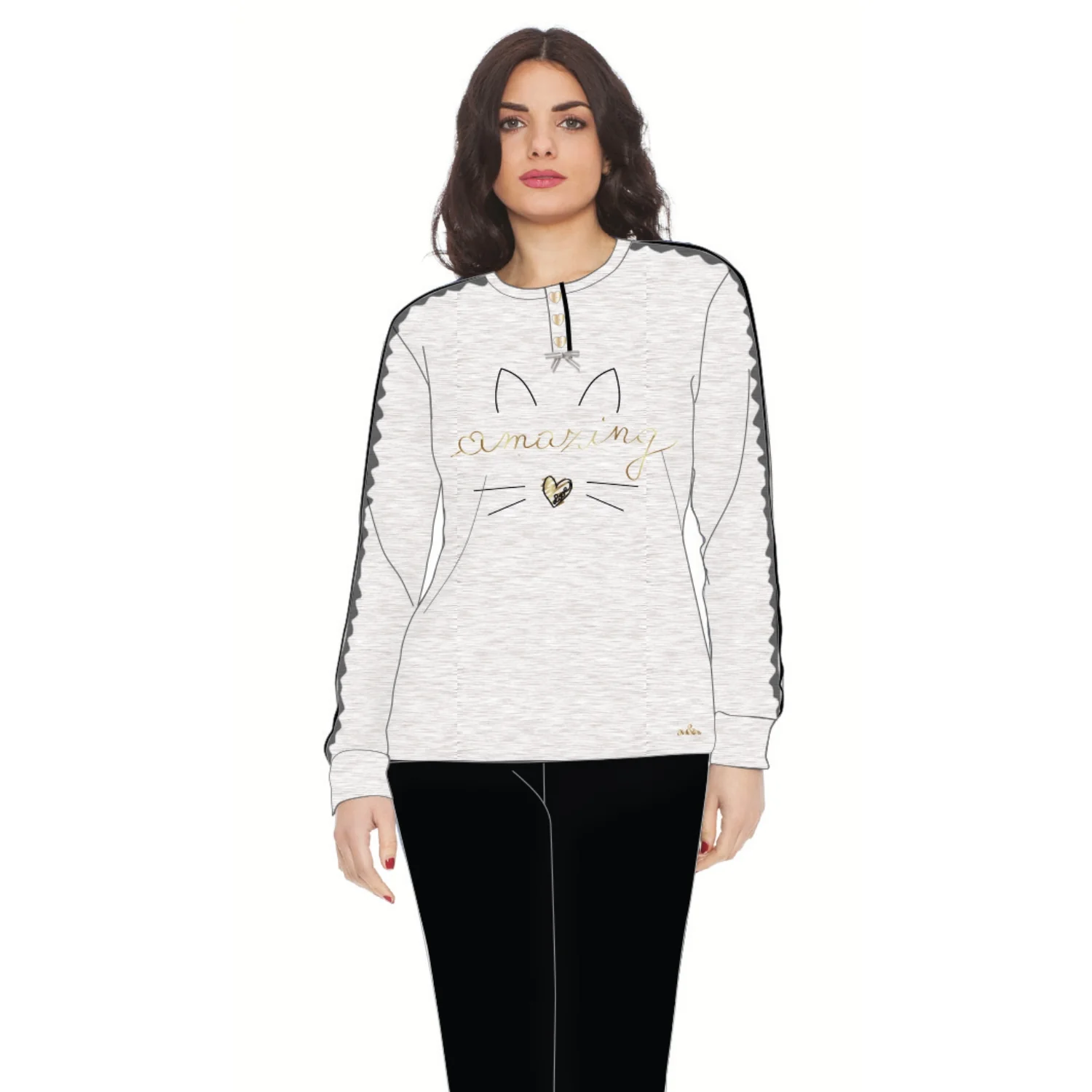Y&m317 – Y&m – Pigiama Donna Manica Lunga Pantalone Lungo In Puro Cotone Stampato