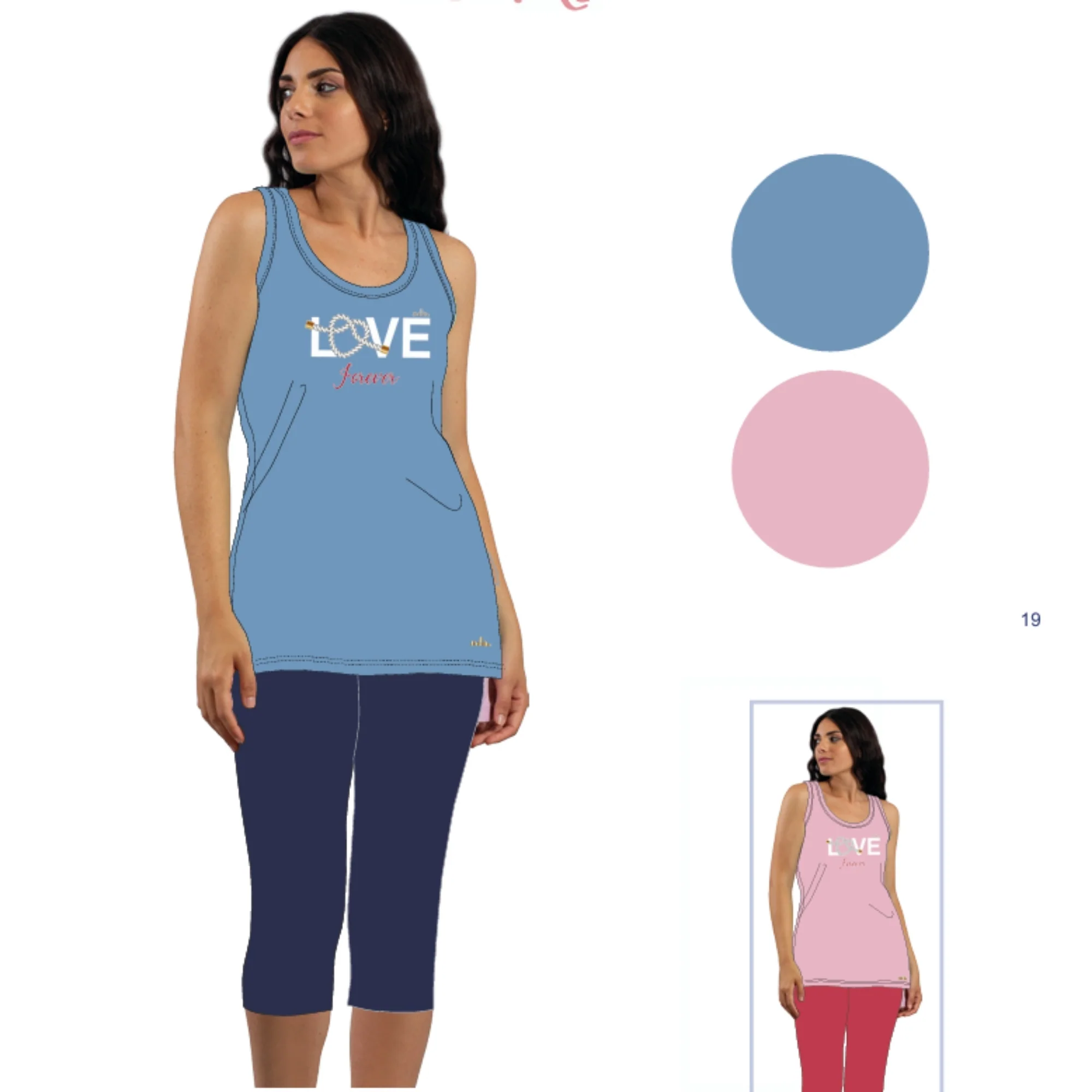 Ymc587 Pig – -you&me Estate- Pigiama Donna Pescatore Spalla Larga Con Stampa In Puro Cotone