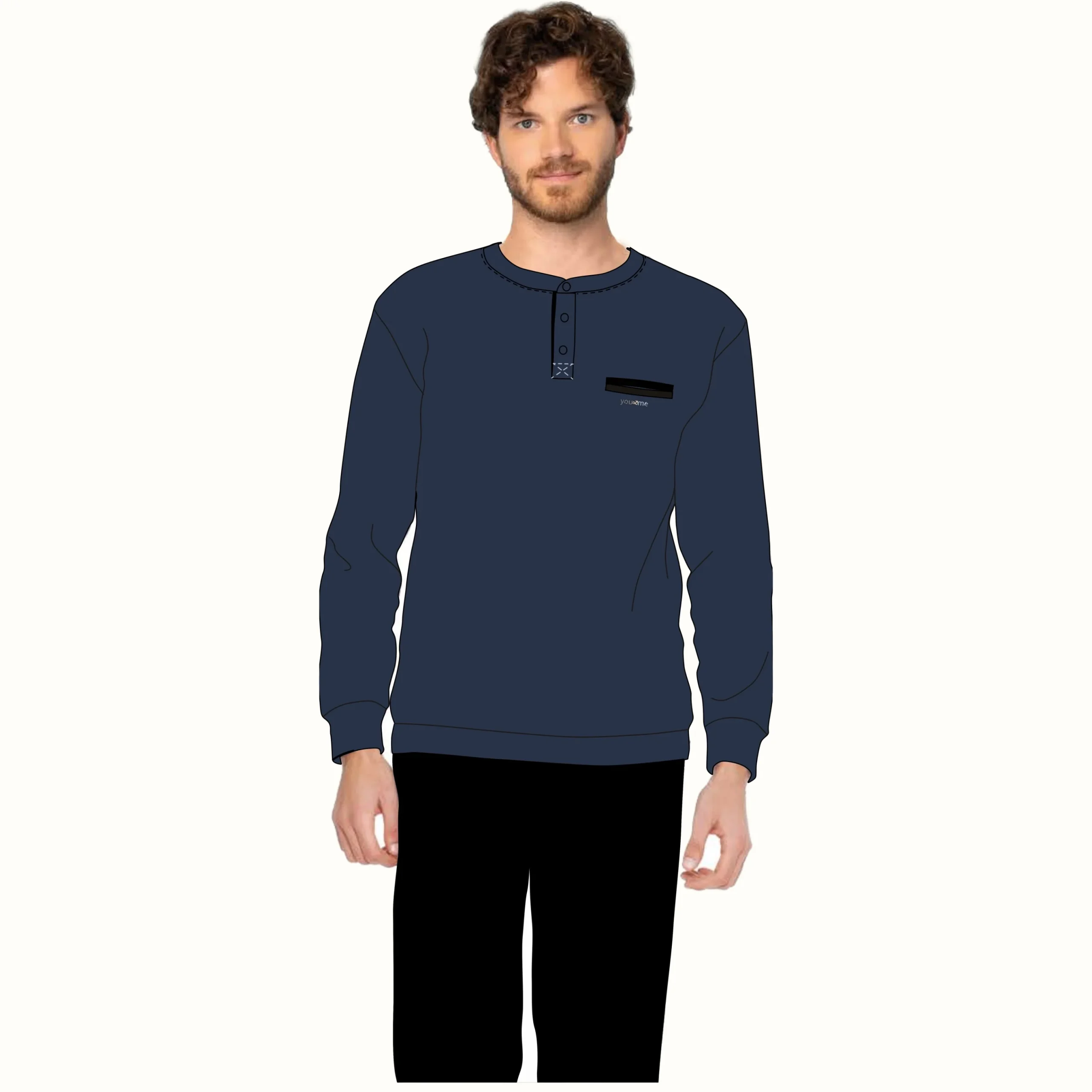 Ymi606 Pig – -you & Me Inverno- Pigiama Uomo Serafino 3 Bottoni In Caldo Cotone Con Pantalone Fantasia