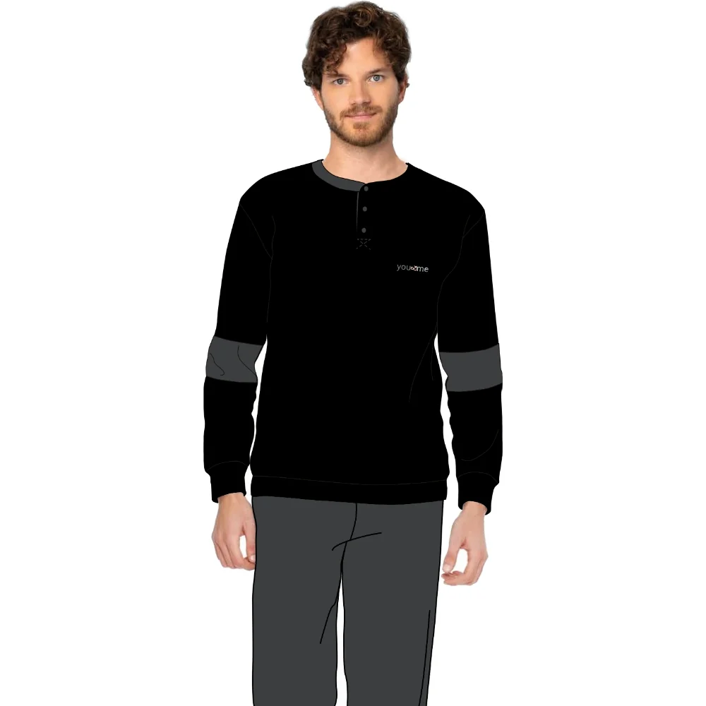 Ymi604 Pig – -you & Me Inverno- Pigiama Uomo Serafino 3 Bottoni Tinta Unita In Caldo Cotone
