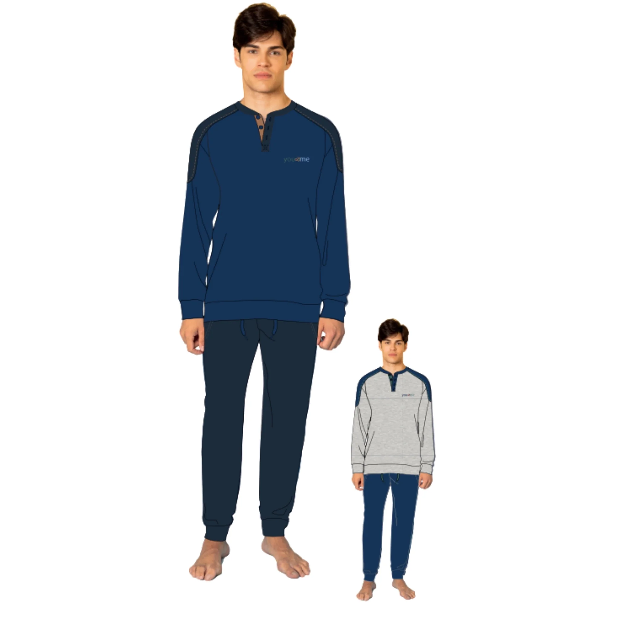 Ymi695 – You & Me Inverno Pigiama Uomo Serafino 3 Bottoni Tinta Unita In Caldo Cotone