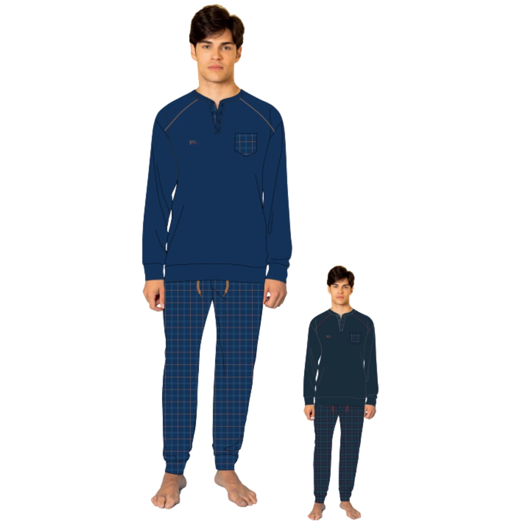 Ymi691 – You & Me Inverno Pigiama Uomo Serafino 3 Bottoni Tinta Unita In Caldo Cotone Con Logo