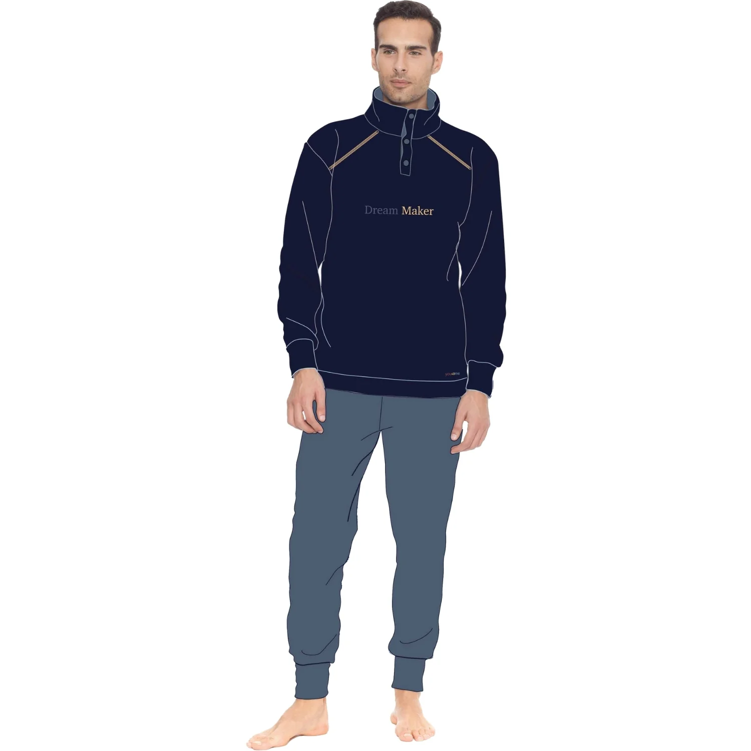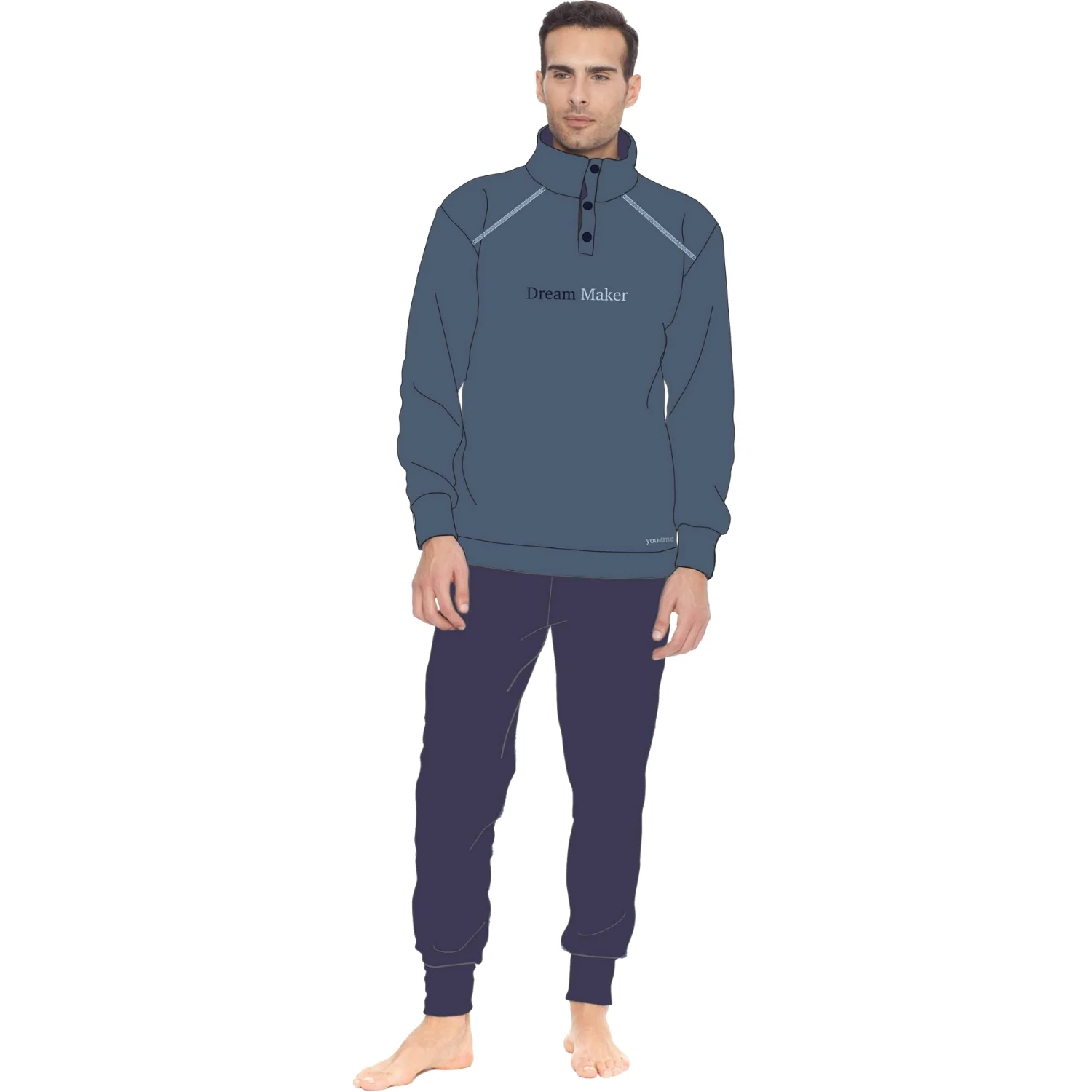 Bym40 Pigiama – You & Me Ragazzo Pigiama Serafino Lupetto 3 Bottoni Sotto Uomo In Pile