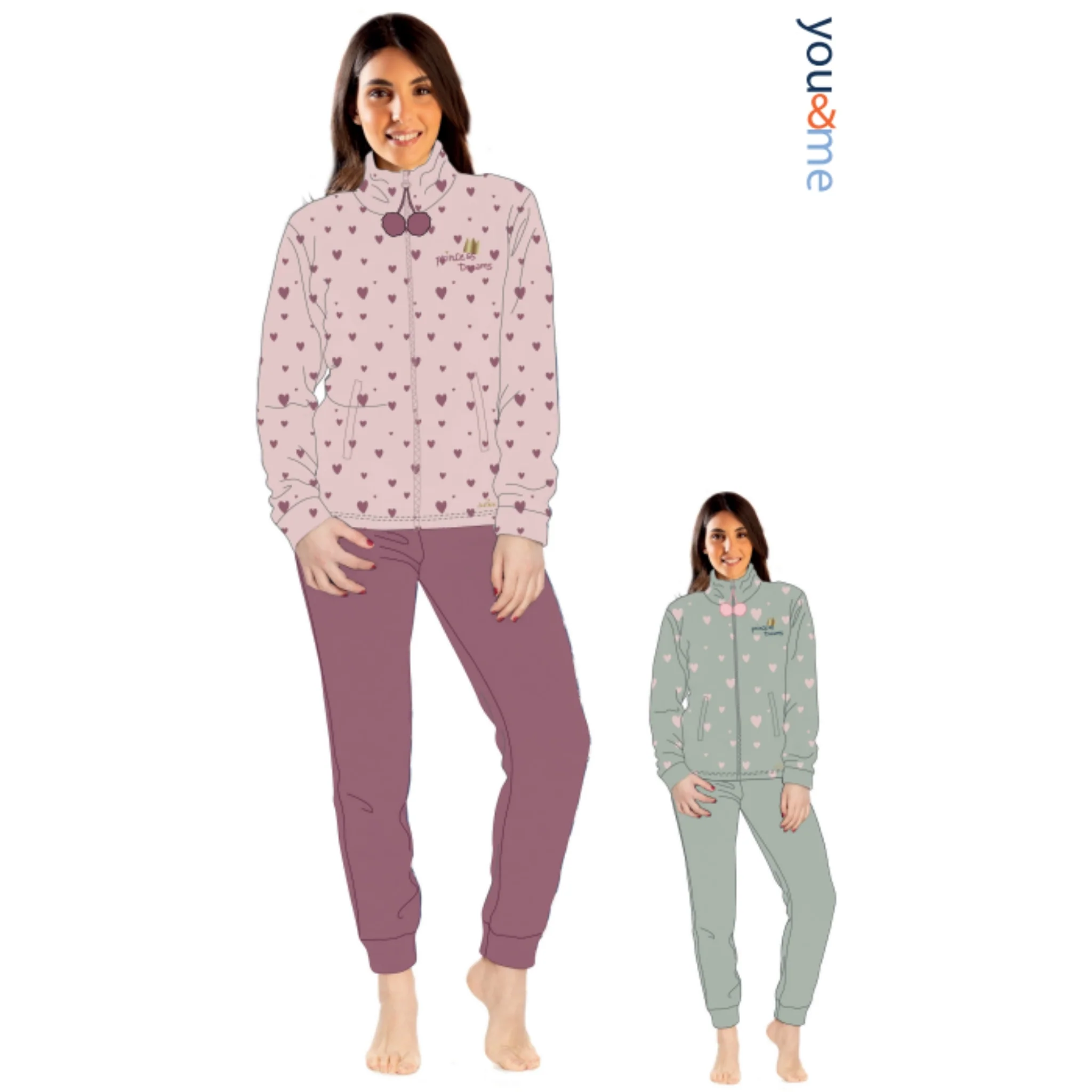 Ymc745 – You&me Donna Coral Pigiama Donna Full Zip Fantasia In Soffice Coral