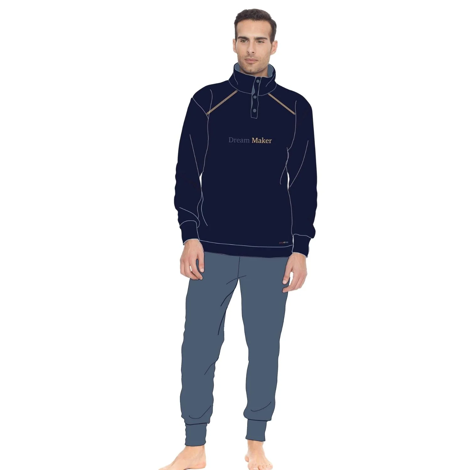 Y&m493 Pigiama – You&me Man-pigiama Uomo In Pile 3 Bottoni Tinta Unita Ricamato