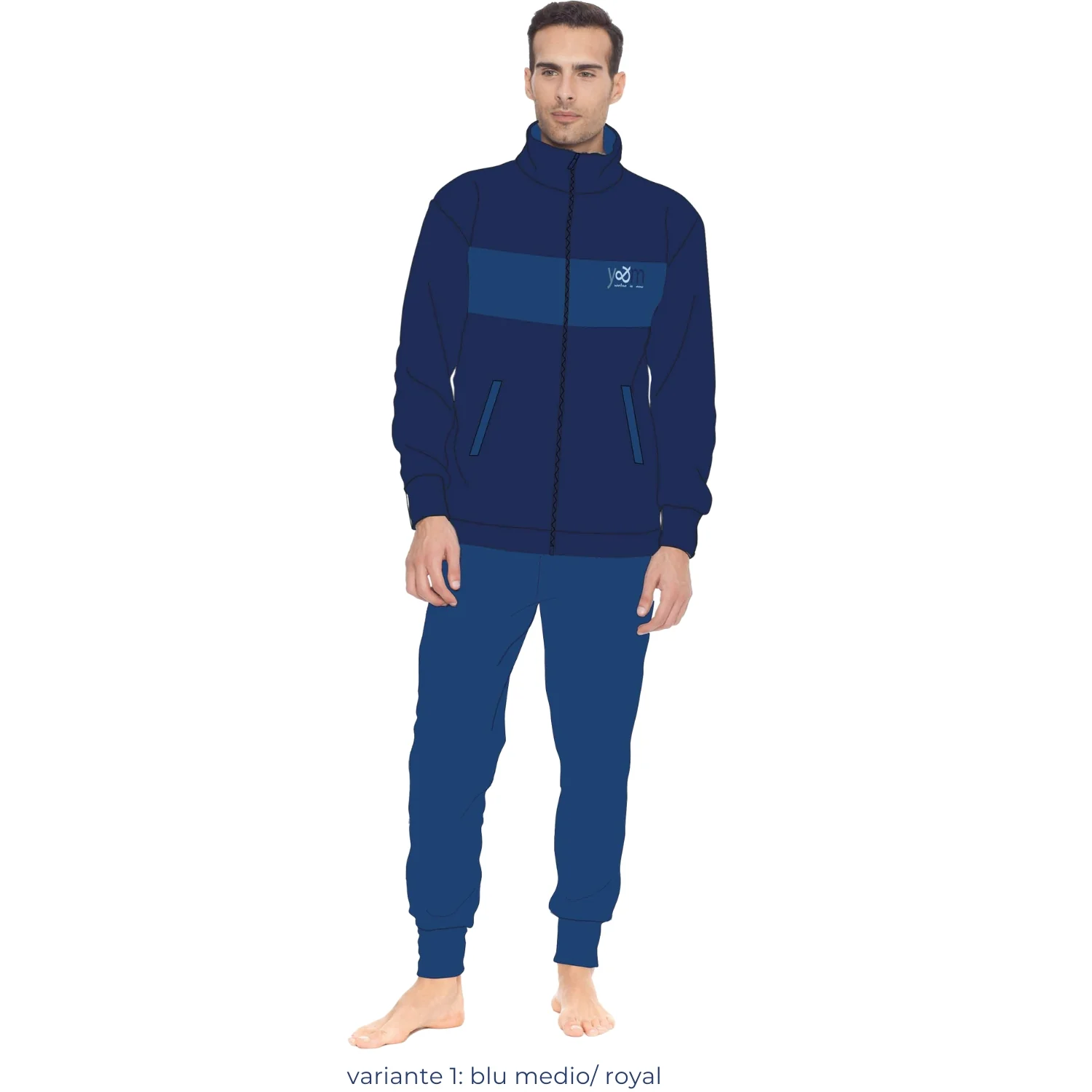 Y&m496 Pigiama – You&me Man-pigiama Uomo In Pile Full Zip Tinta Unita Ricamato